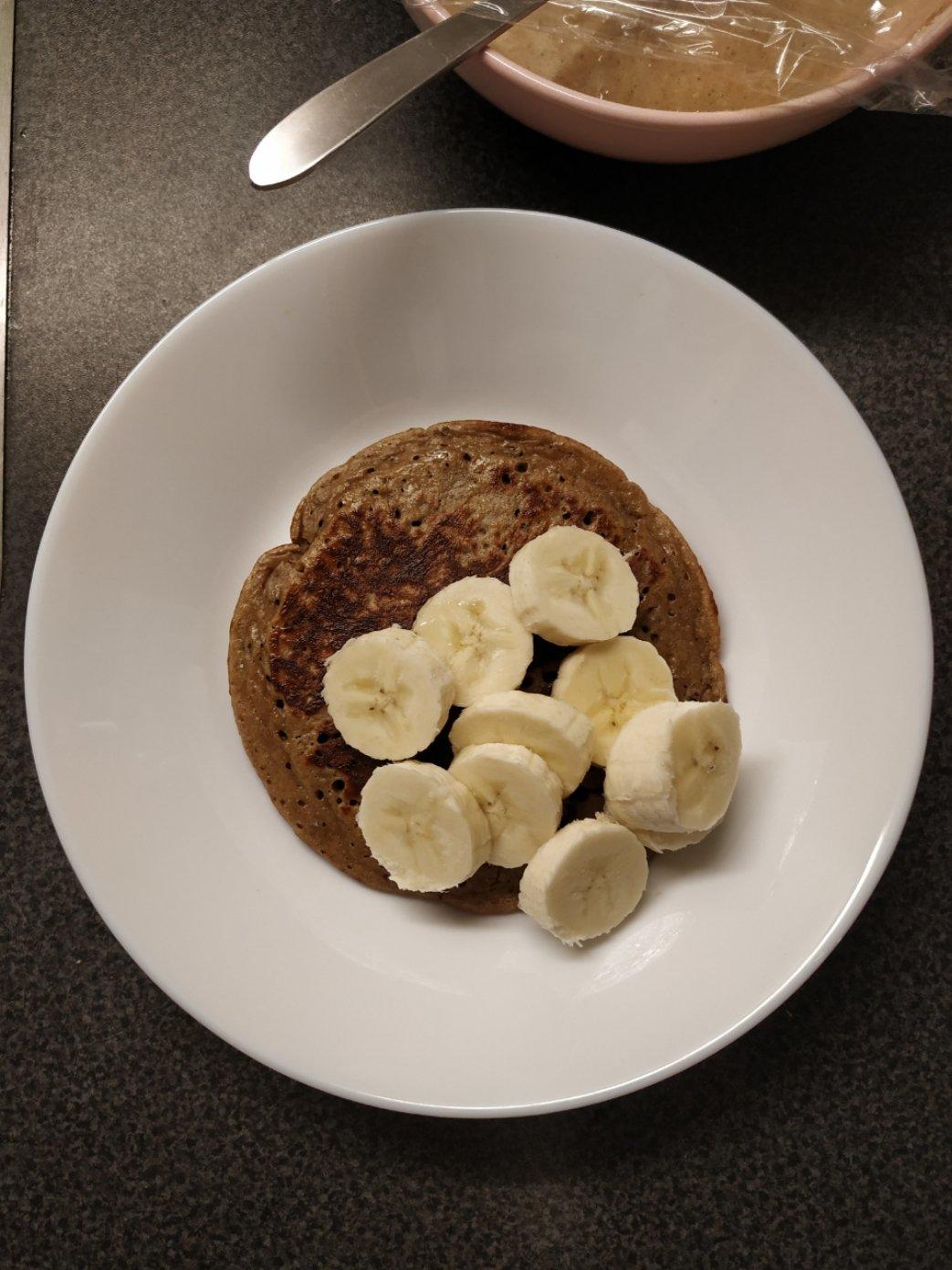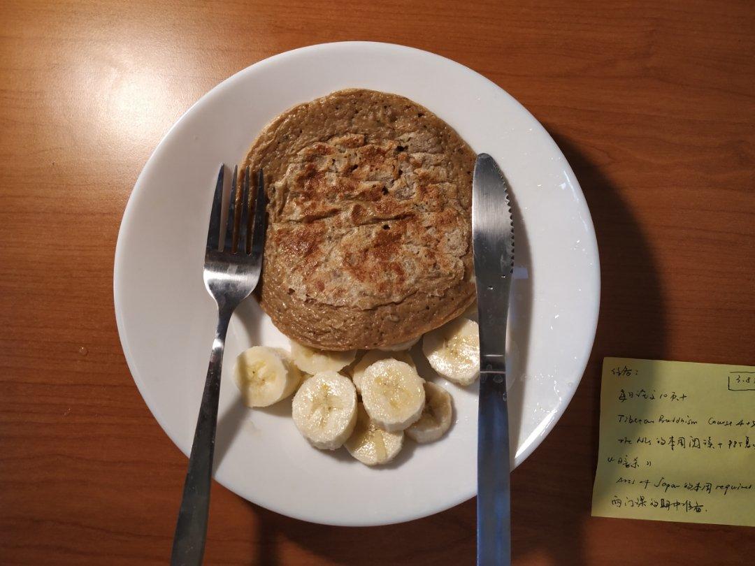 今天又吃煎饼啦。加了一点昨天买的香草精,结果一点味道也尝不出来,有一丢丢失望。不过今天发现,煎饼发酵时间短一点更好吃,不...