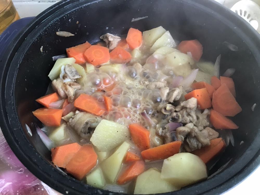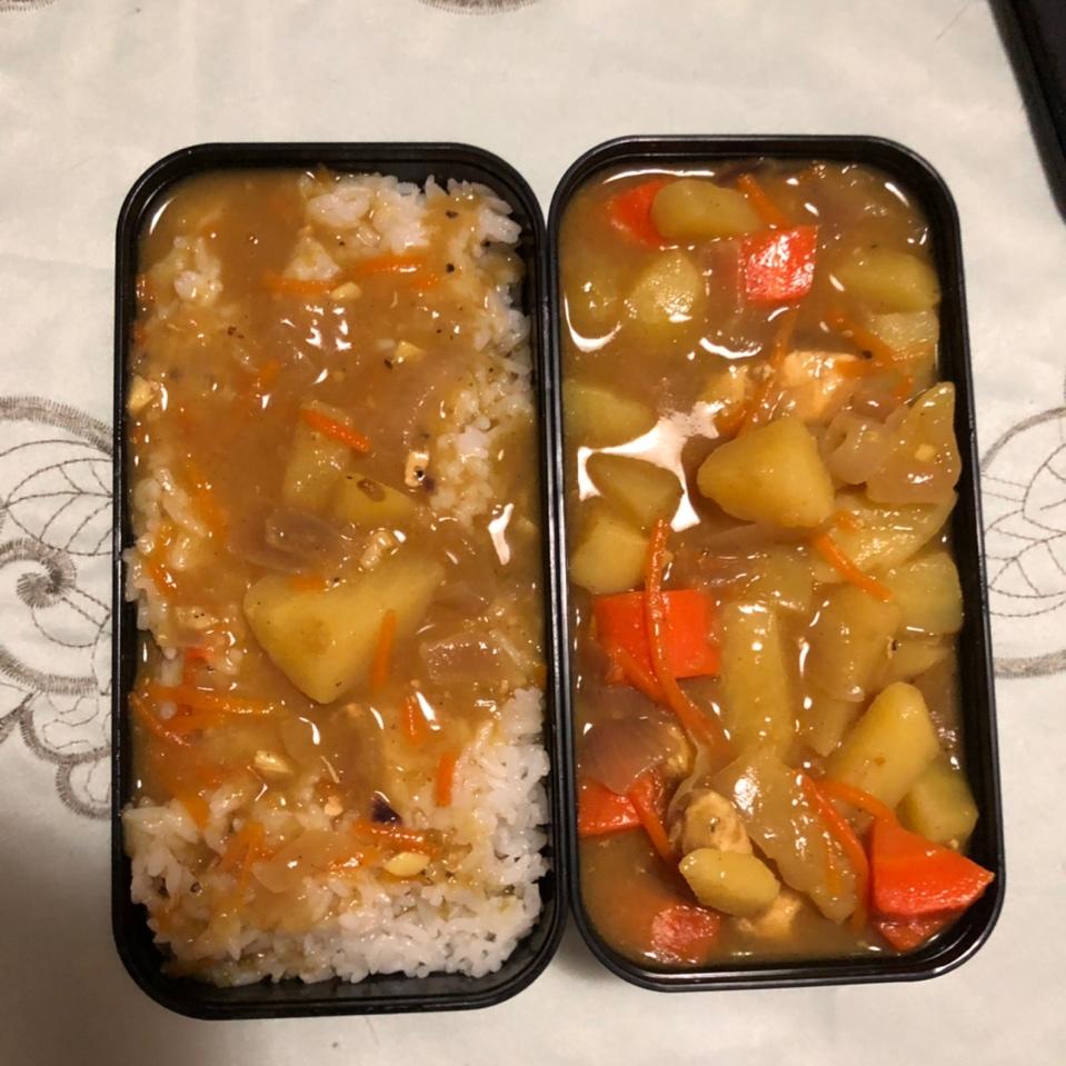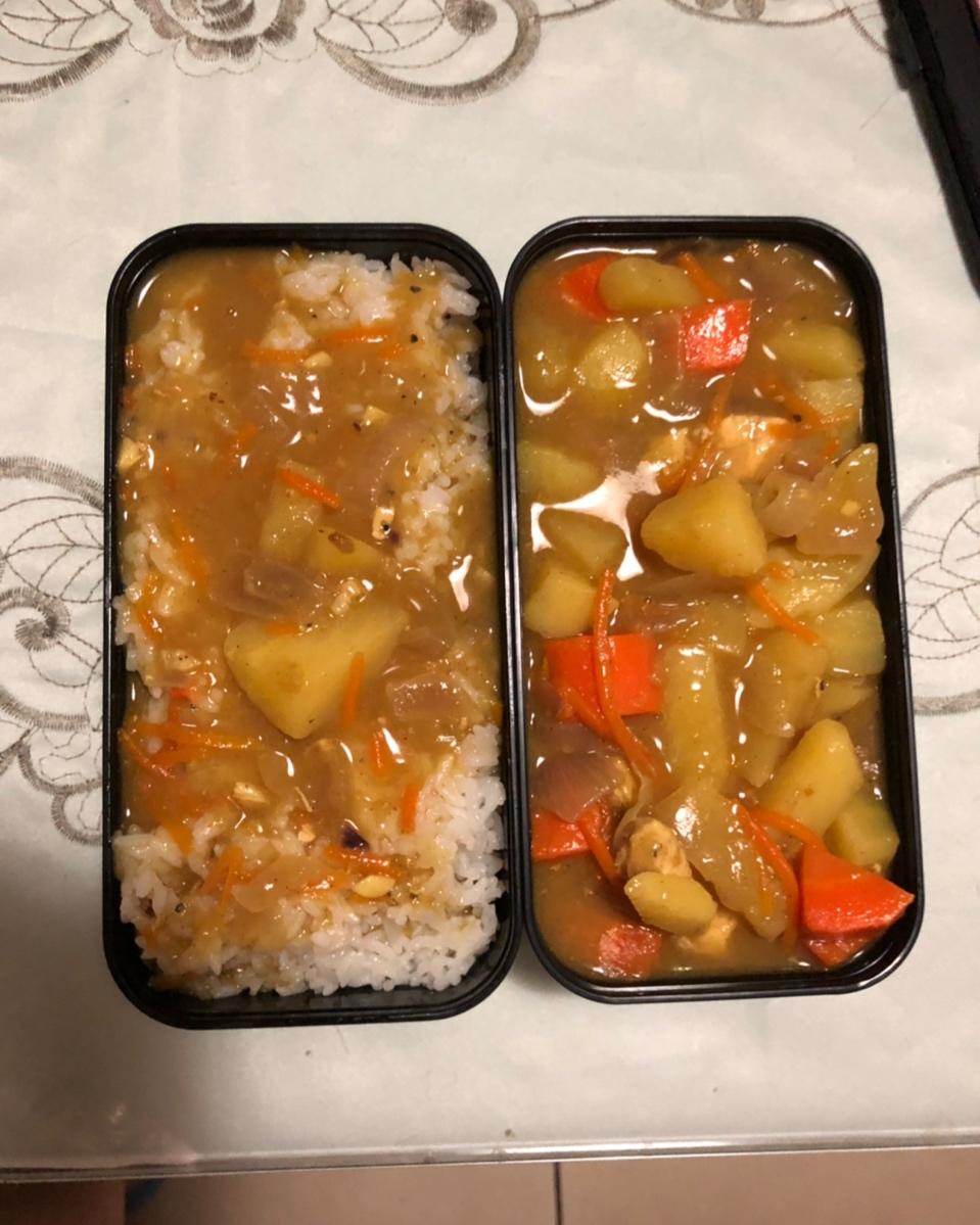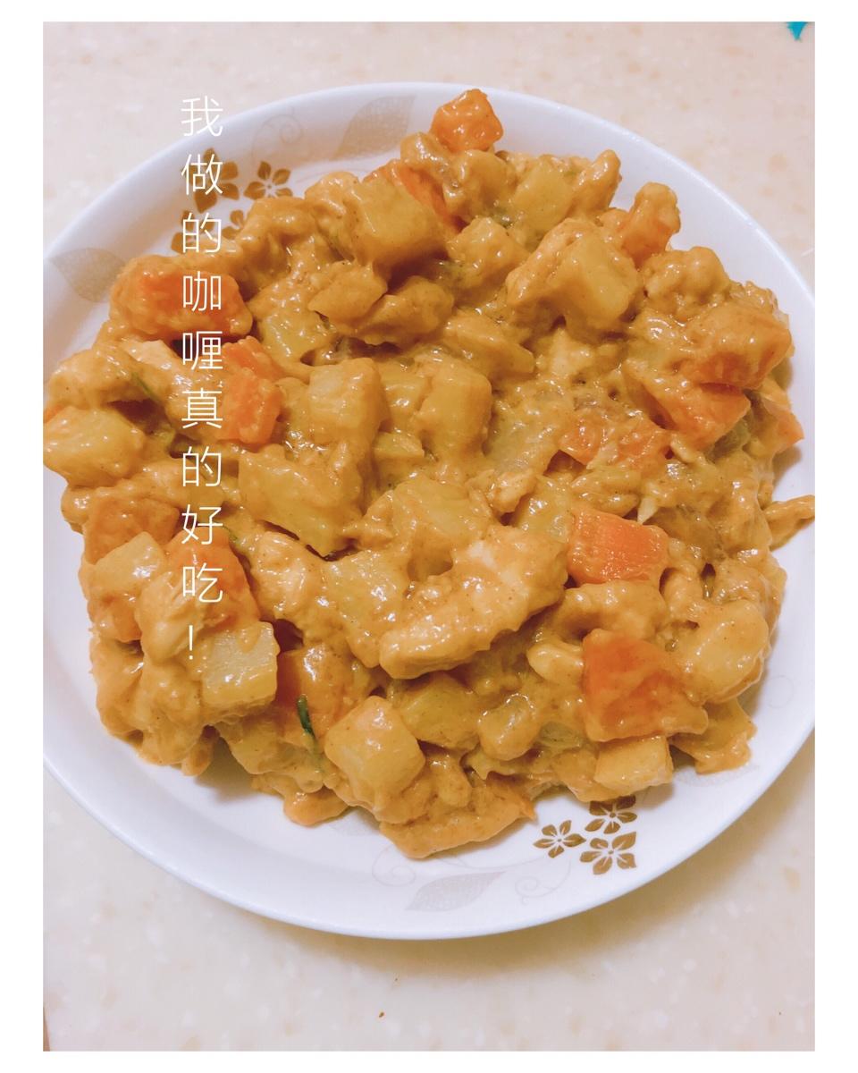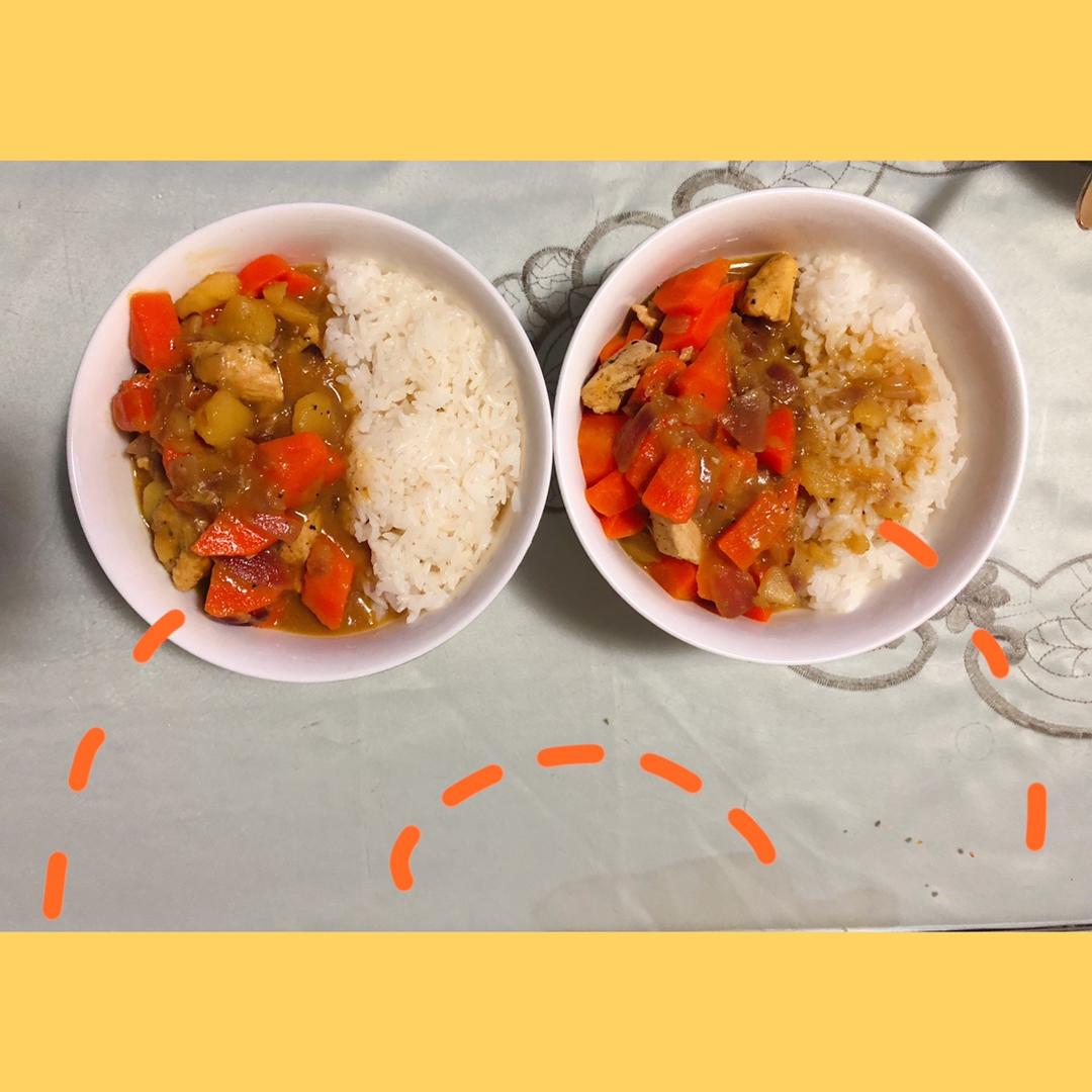 打卡第二次做 上次是用的原味咖喱➕水放多了 感觉没那么好吃 但是因为煮的久胡萝卜什么的很熟络 这次是微辣咖喱➕煮得比较浓...