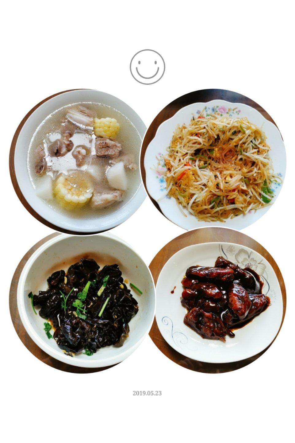 一家三口,三菜一汤。2019.5.23