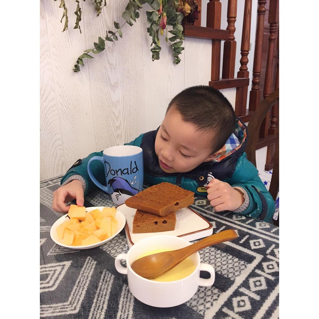 马来糕 蒸蛋 哈密瓜 牛奶