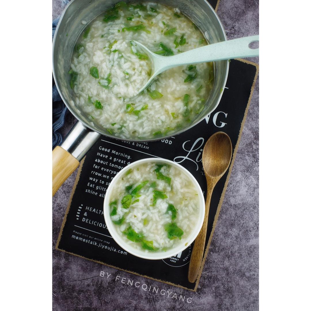 晚上用剩饭煮了一锅芹菜叶粥