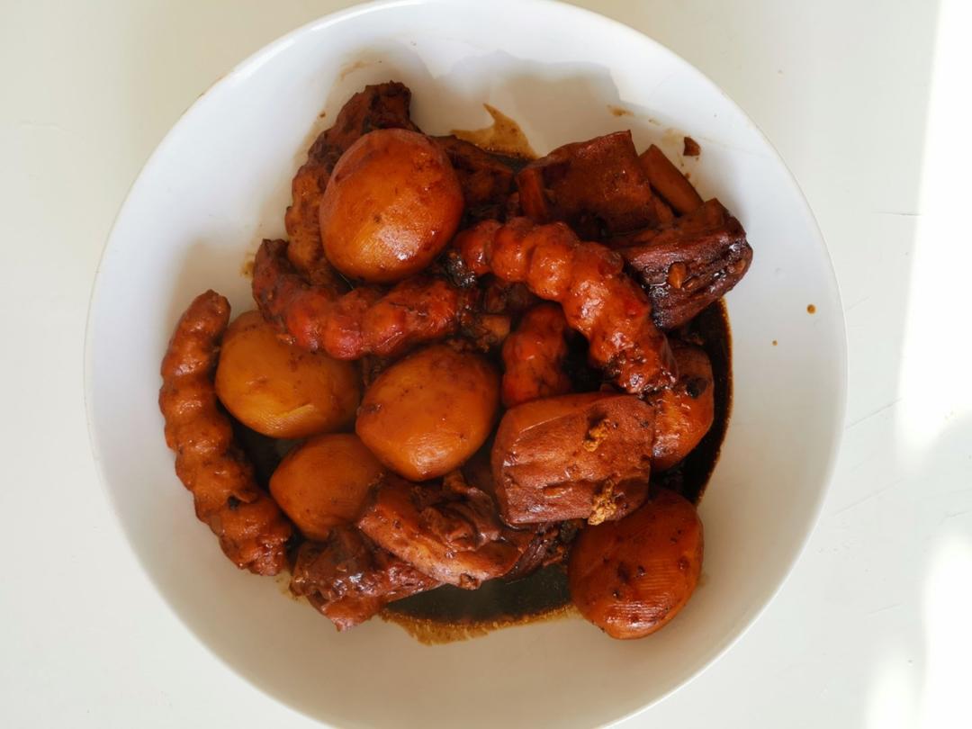週末火鍋沒吃完的底,紅燒了一大鍋
