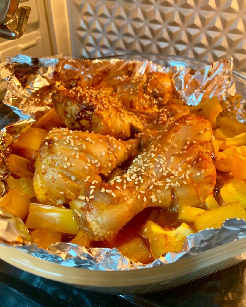 鸡腿也可如法炮制嗷,加入彩椒洋葱打底非常🉑️