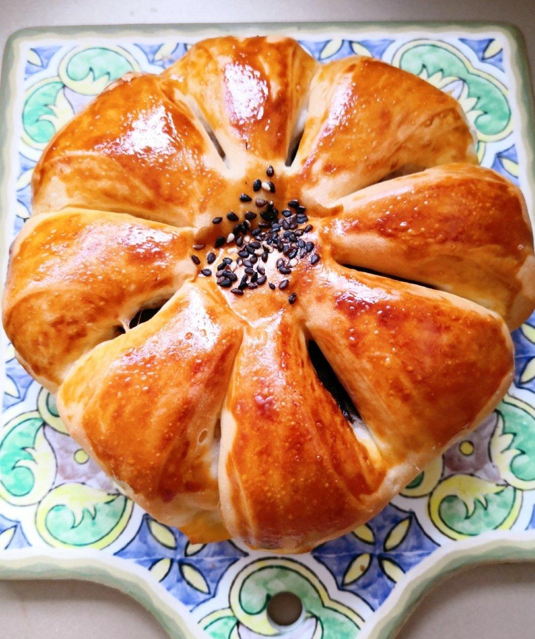 花型真的挺美的!用的北海道吐司的方子,一发过头了,临时改成这个花朵豆沙包,正好把剩下的自制豆沙用完了,算很松软,还行吧。...