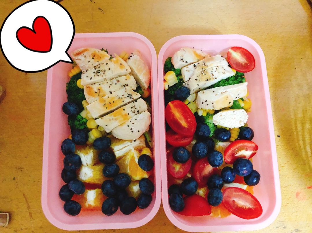 鸡胸肉沙拉(底下都是红豆饭)今天超多碳水的