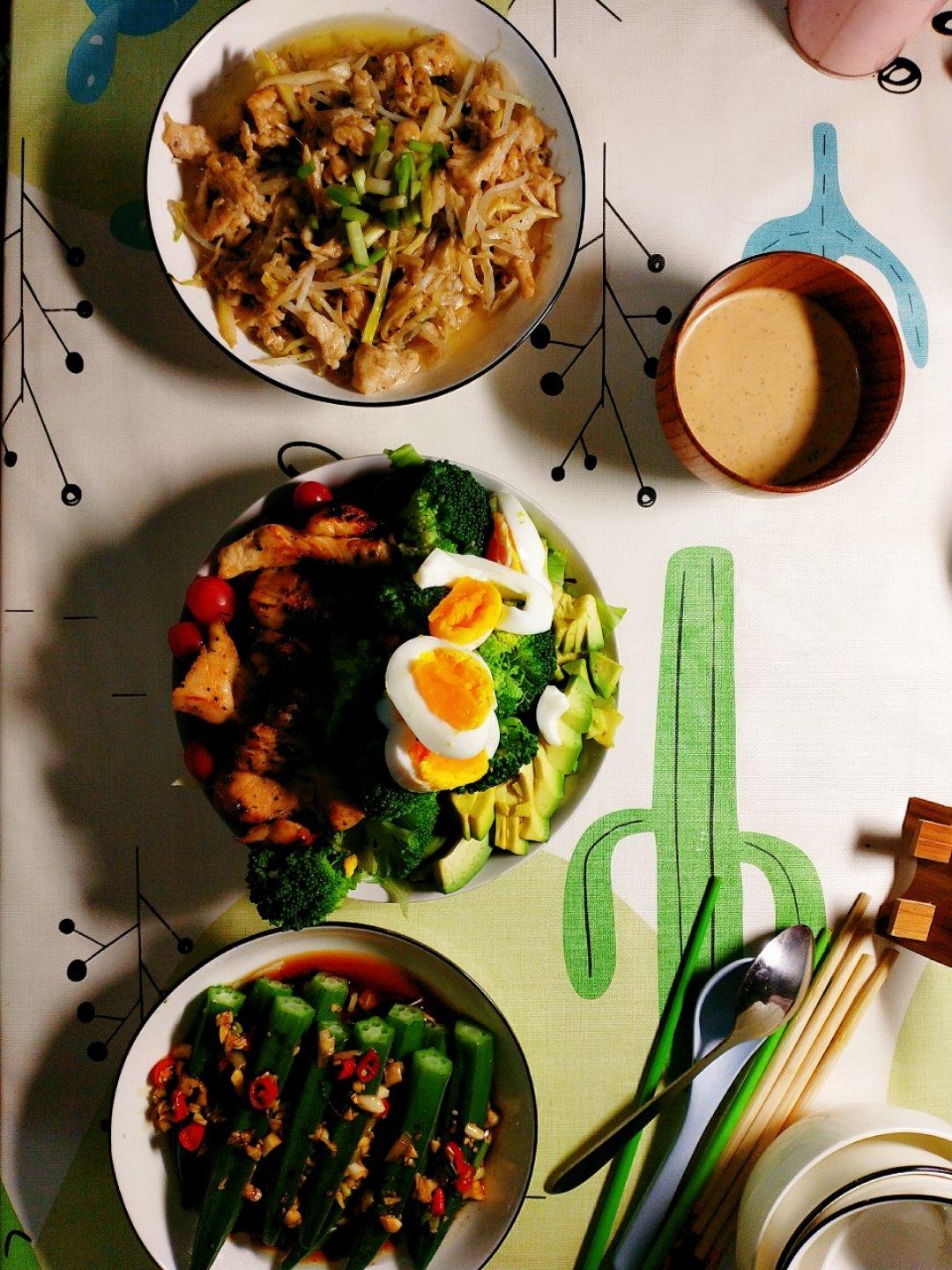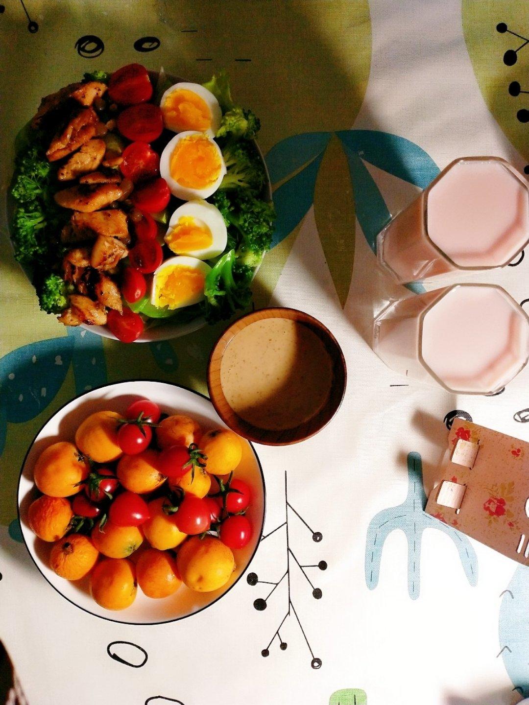 鸡胸肉沙拉(今天主食加了紫薯、芋头、红豆饭