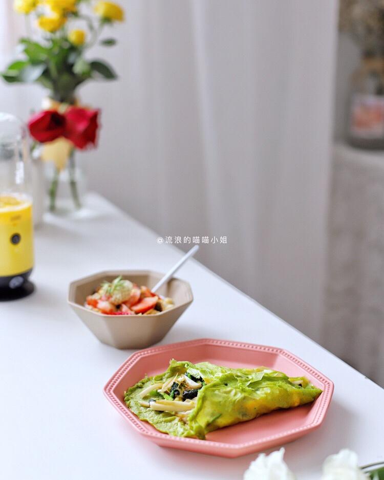 🥗早餐:【菠菜主题09】菠菜饼包菠菜➕酸奶燕麦