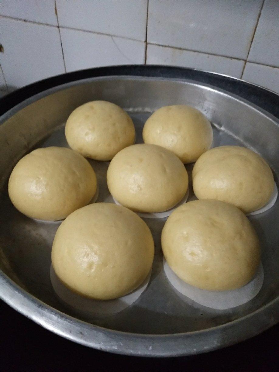 200克粉,红薯118克,水20克,我家红薯比较干的,加了少量糖,好香甜,下次加奶粉会更香...