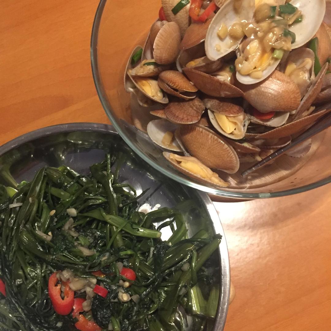 白灼虾和青菜