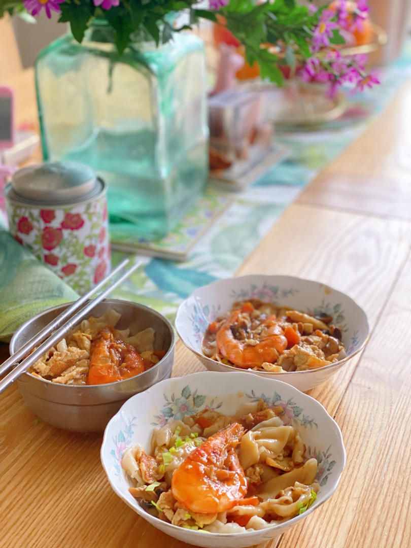 餐厅终于装修好赶在新年用上啦!阳光撒满的早餐,用扯面变成揪面片儿,外加鸡蛋海鲜卤也很美味!就是碗筷需要升级一下...