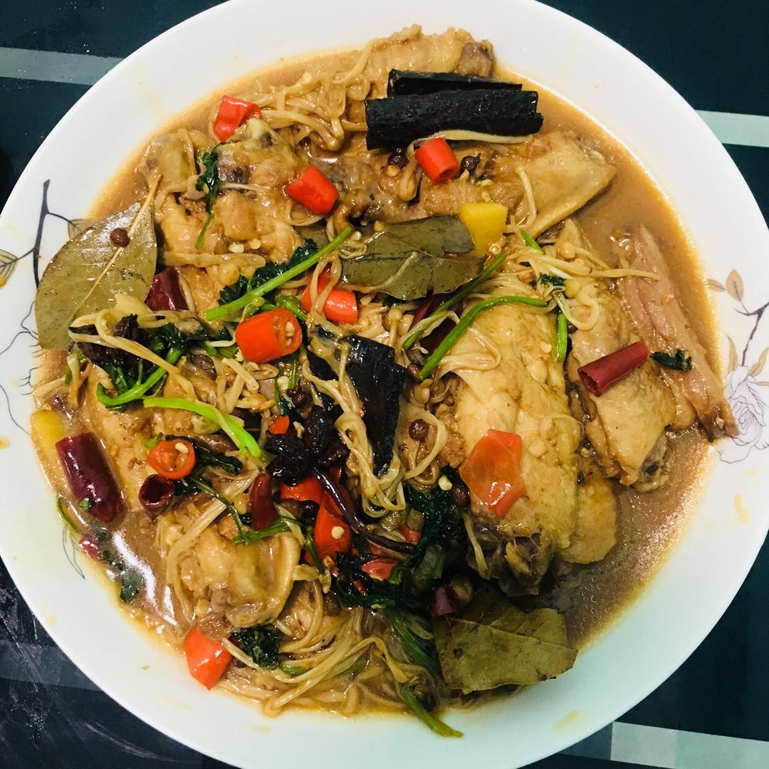 这是第二次做鸡翅这次加了金针菇,特别下饭