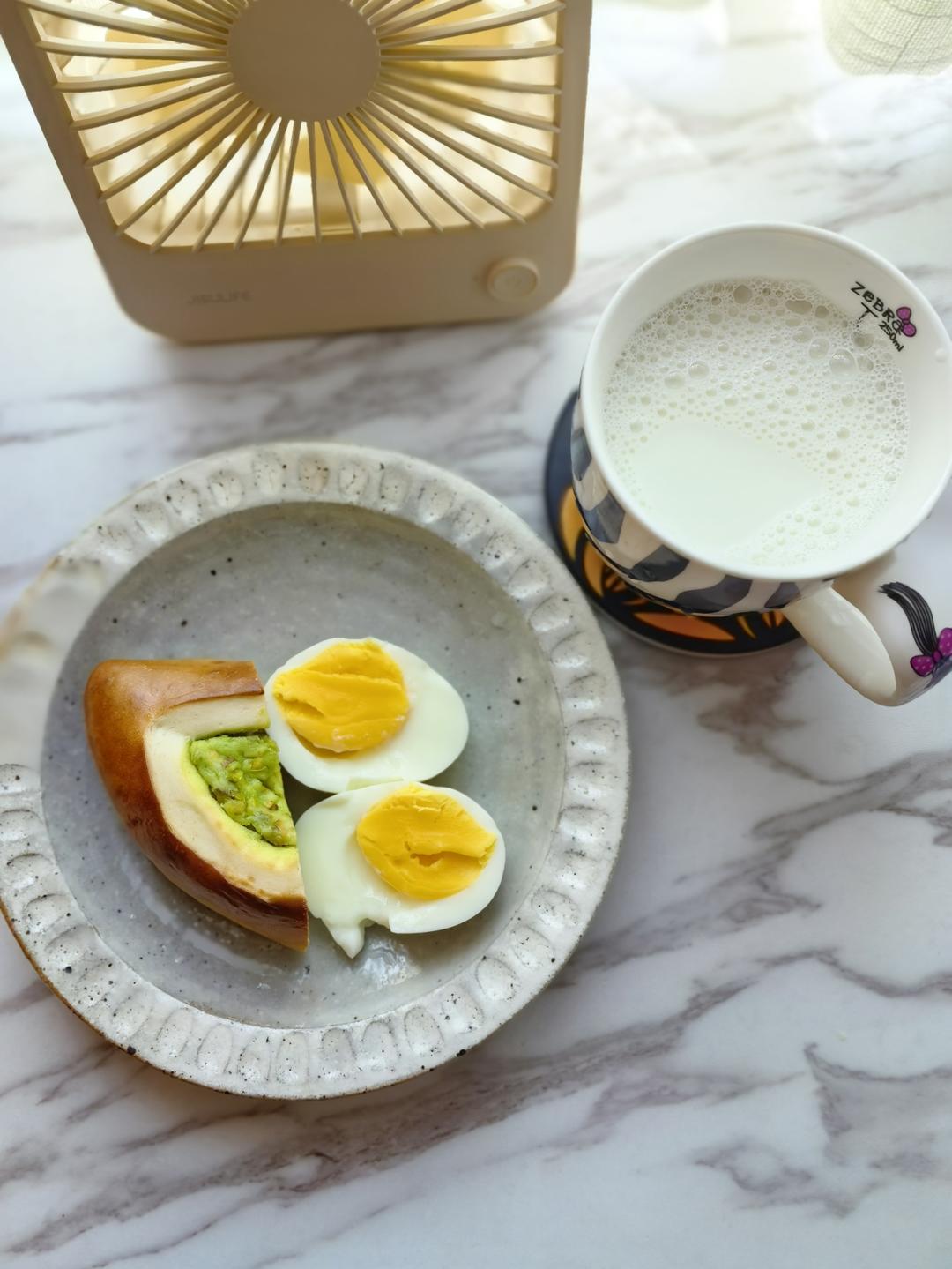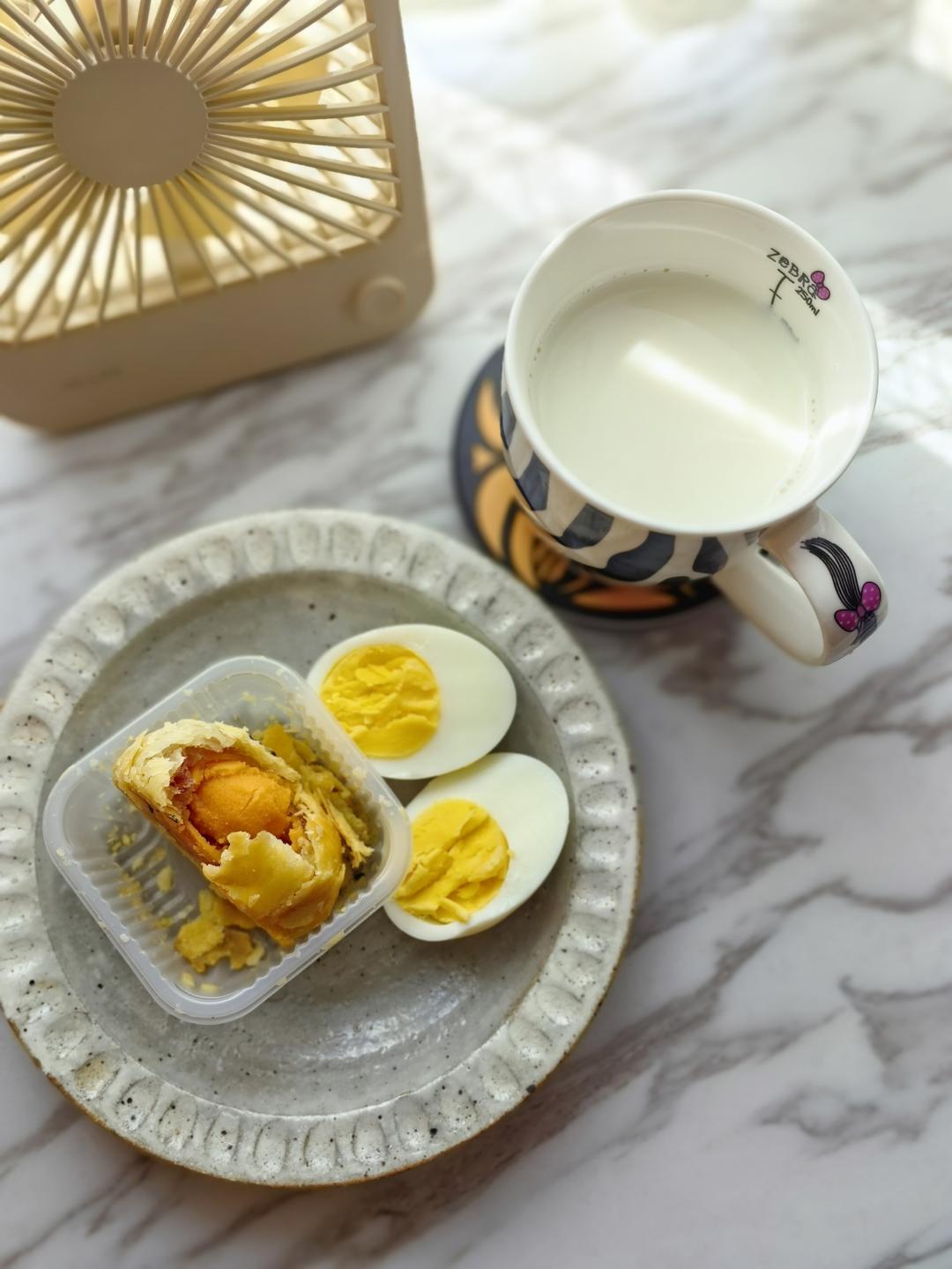 开心果碱水棒,水煮蛋,纯牛奶