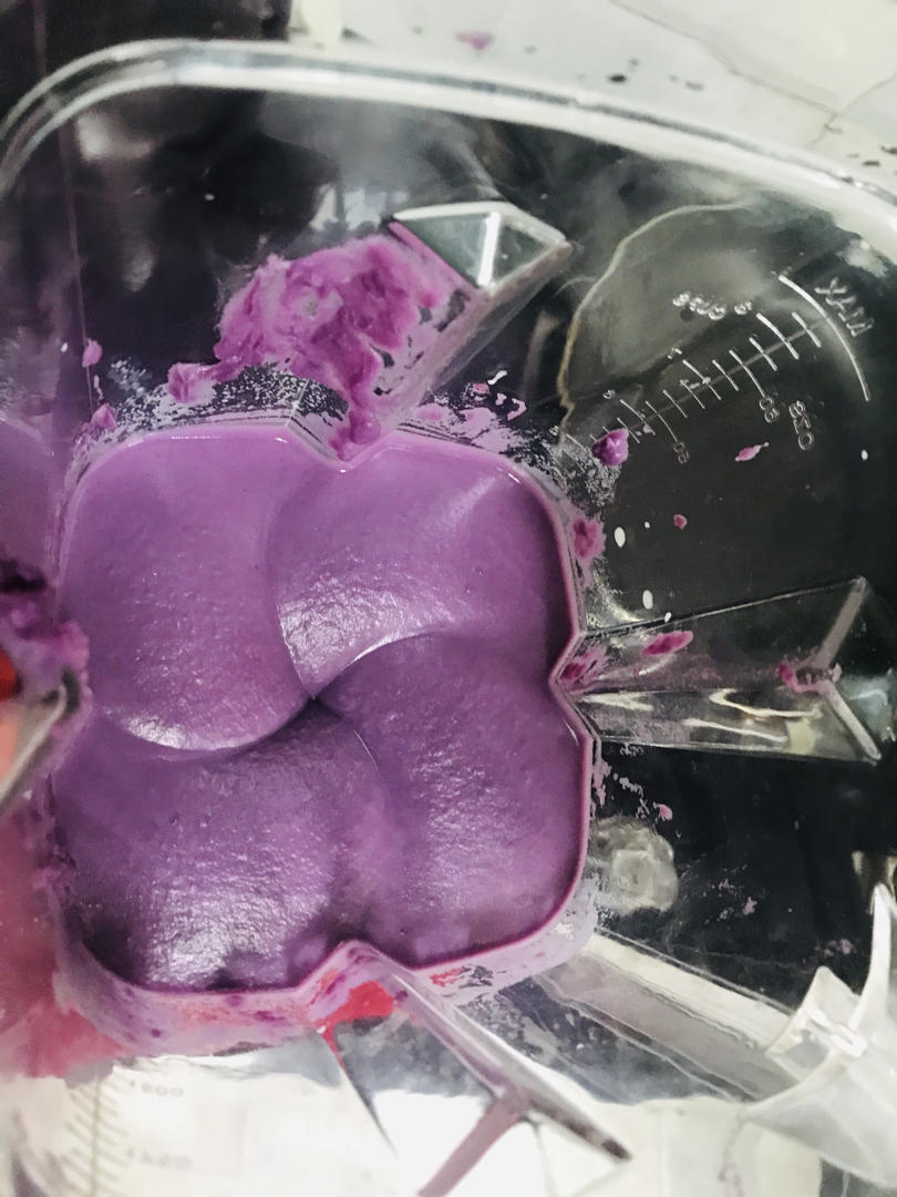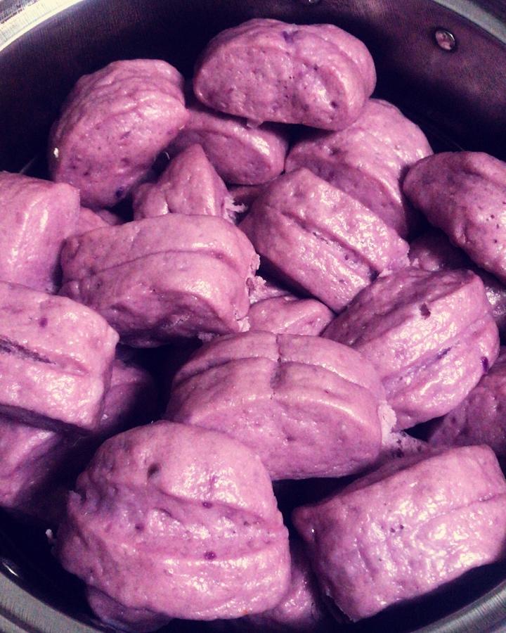 想做成紫色但是好像紫薯粉放少啦,一口下去还是很满足