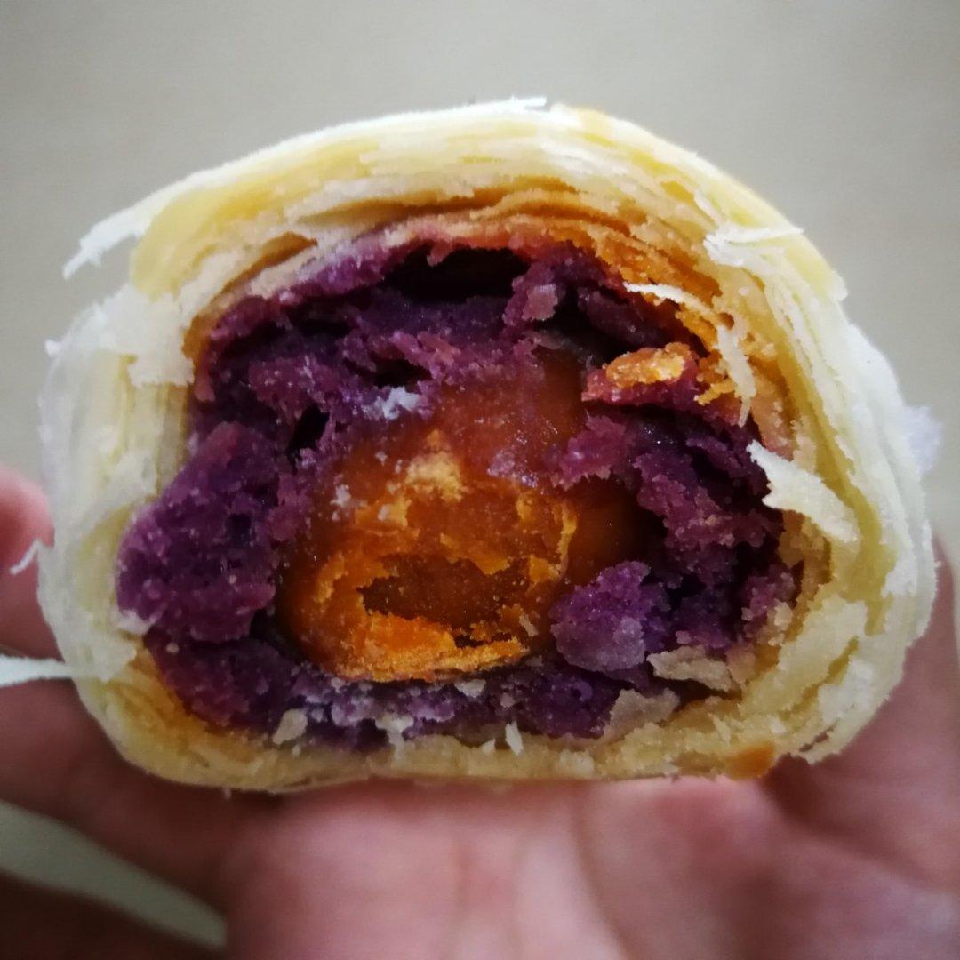 高颜值的紫薯馅蛋黄酥!非常好吃!不知道紫薯馅是否还是有点湿的缘故,刚烤好时层次并不是很分明,放凉后反而看出层次来啦! #...