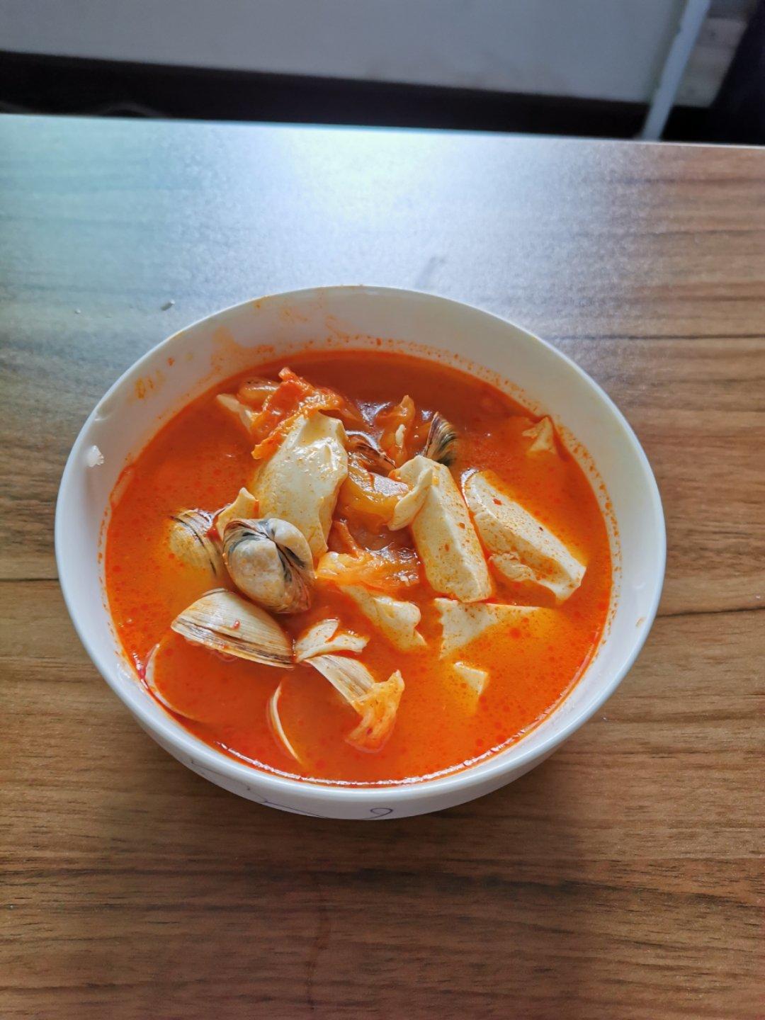 #蛤蜊豆腐泡菜煲#