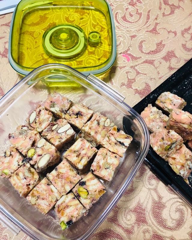 草莓味棉花糖做出来的粉红色的雪花酥