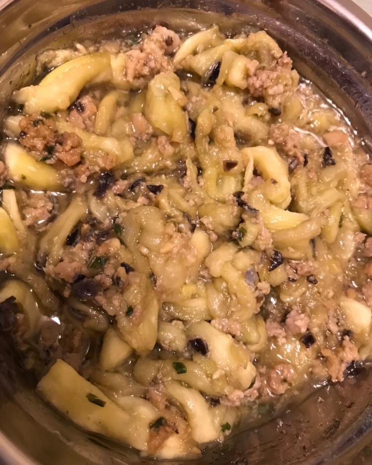 刚好妈妈做饺子剩了点生的木耳肉末,家人不吃姜末,和了些蒜蓉和葱蓉一块下锅煮了,加了点酱油蚝油盐糖茄子蒸熟了一拌,...