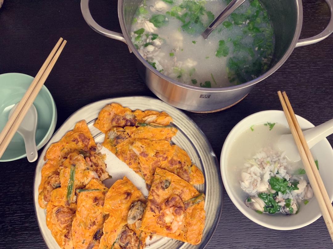 海鲜泡菜饼和蚝粥,没有冬菜味道差这么多吗,虽然还是很好吃了