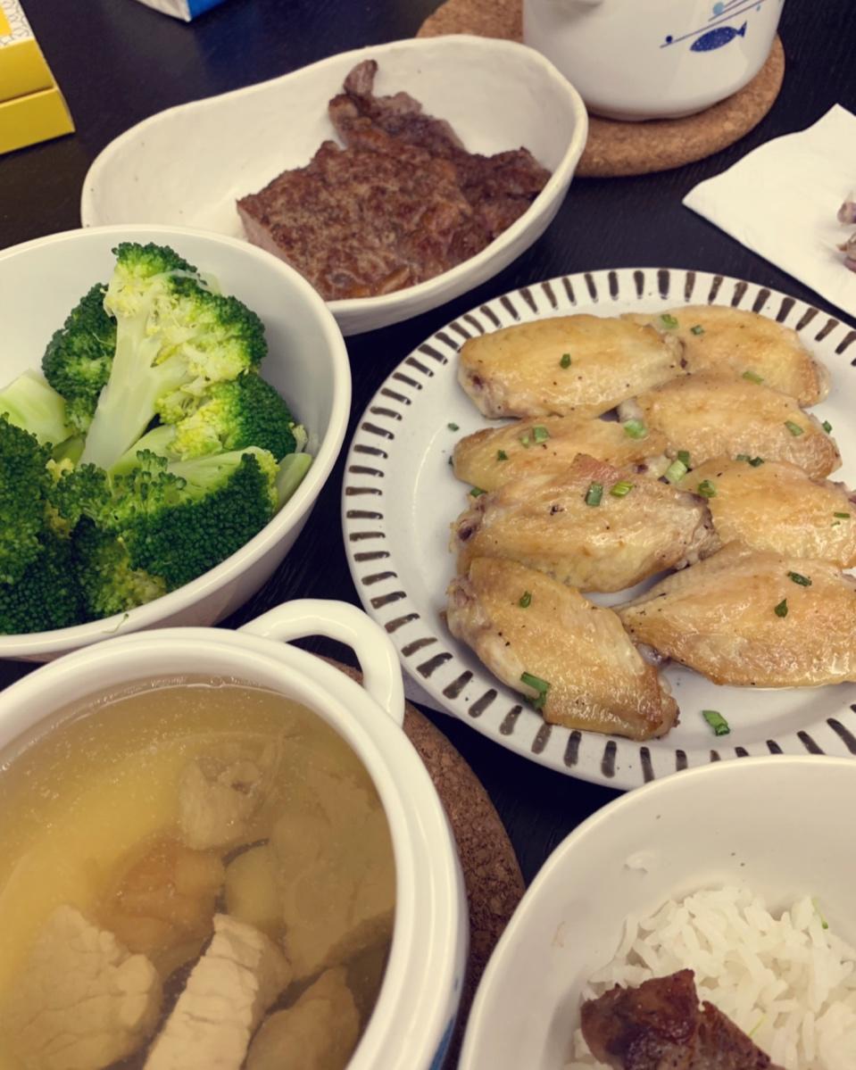 盐煎鸡翅,日常小哥牛排and日常瘦肉汤