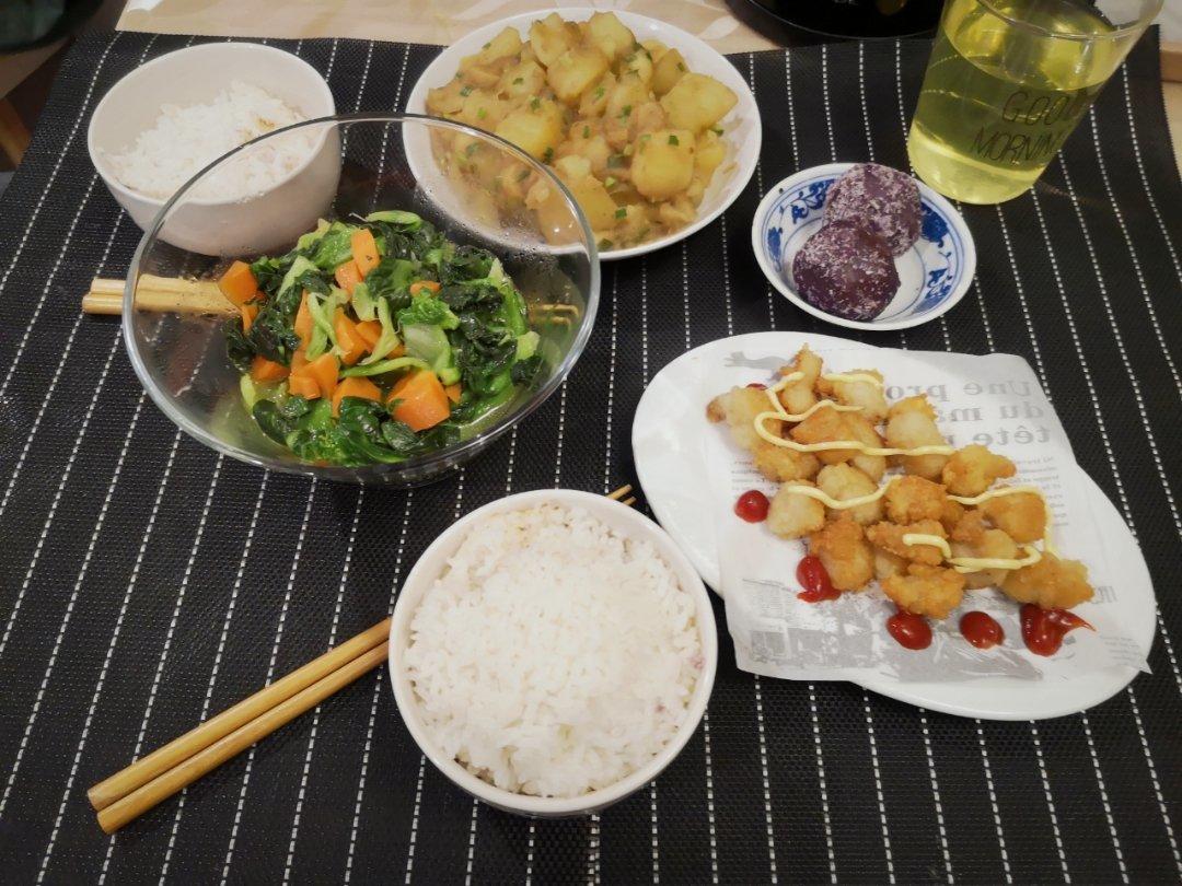 下雨天,翻出土豆们,五香麻辣什么味道都齐全了,就差点鸡块,可惜。