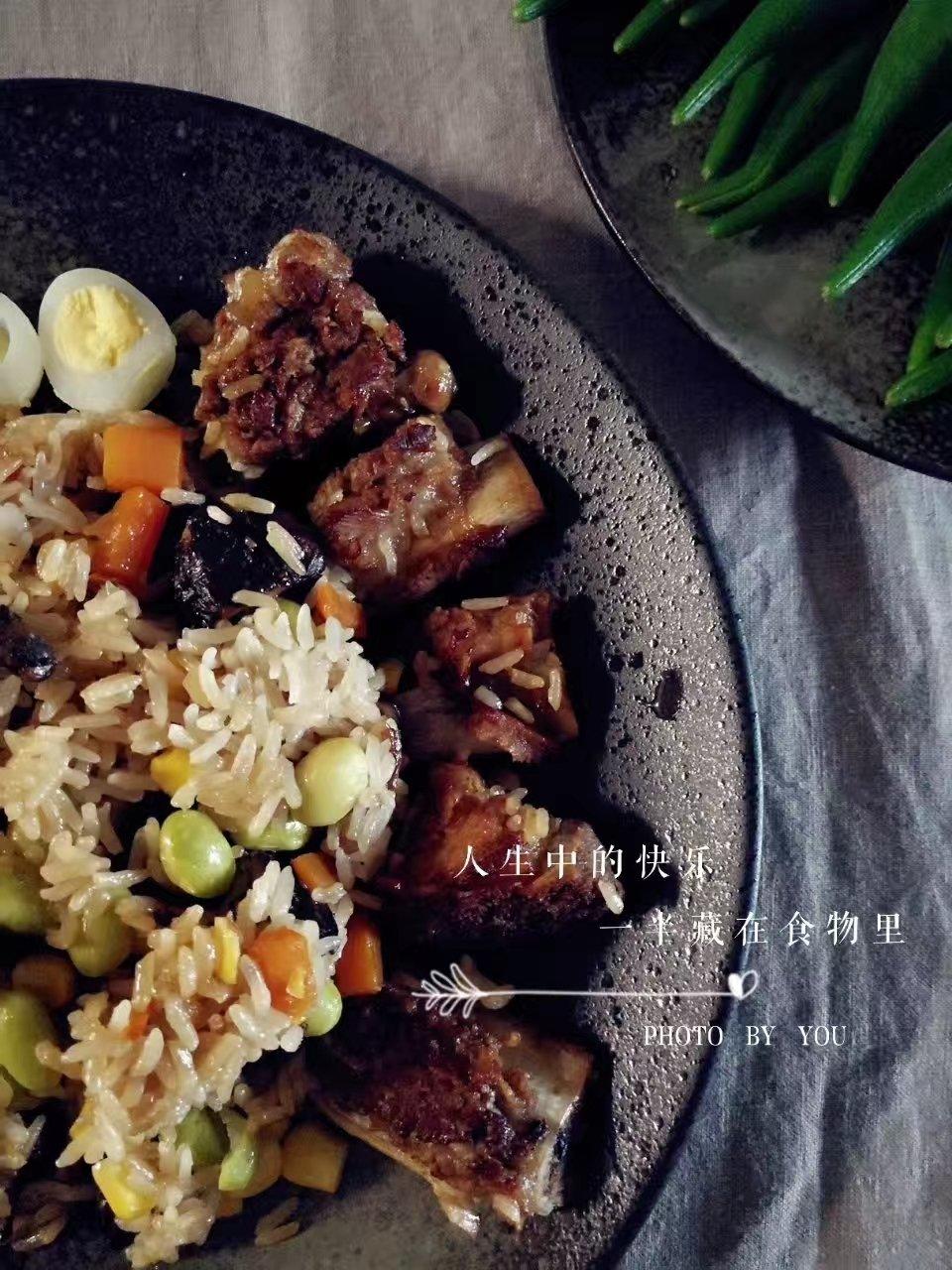 认真做一份排骨焖饭😋 😋