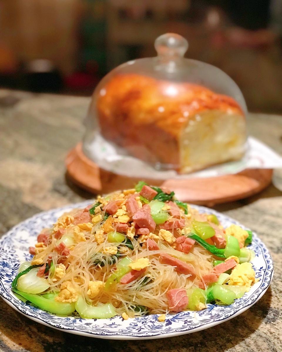 儿子一天的课,排练到22:00,这会儿刚到家,他爸炒了个米粉,味道真好,晚餐宵夜权作一顿。台湾新竹米粉真棒,不会烂糊糊的...