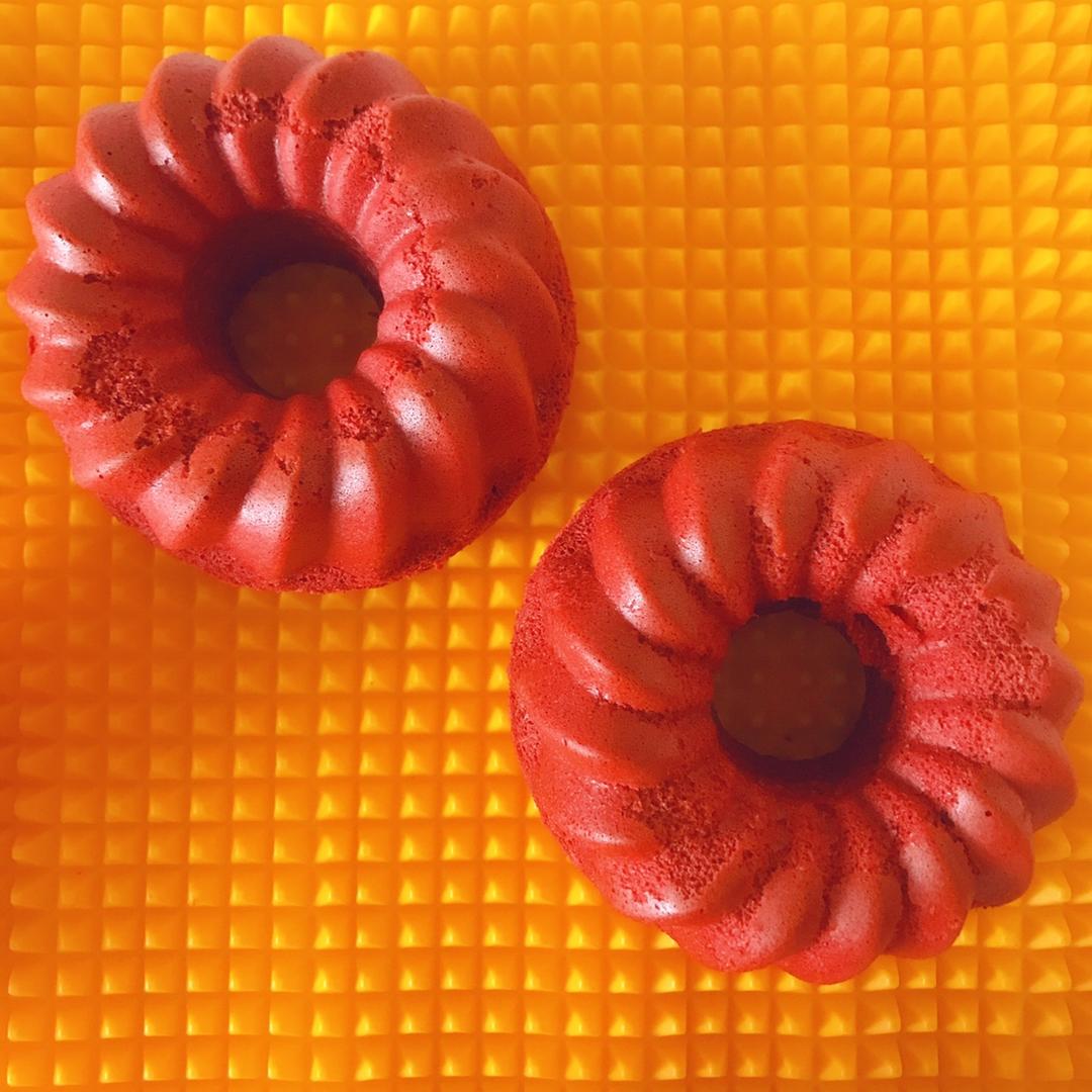 红丝绒&糖粉各15g,150度45分钟。2个4寸+4个麦芬,刚烤出来好软。奶酪霜是33g奶酪&淡奶油20...