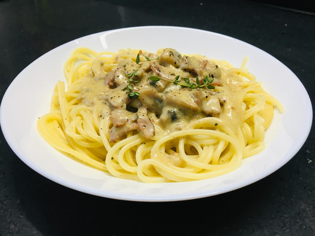 #奶油培根蘑菇意大利面#