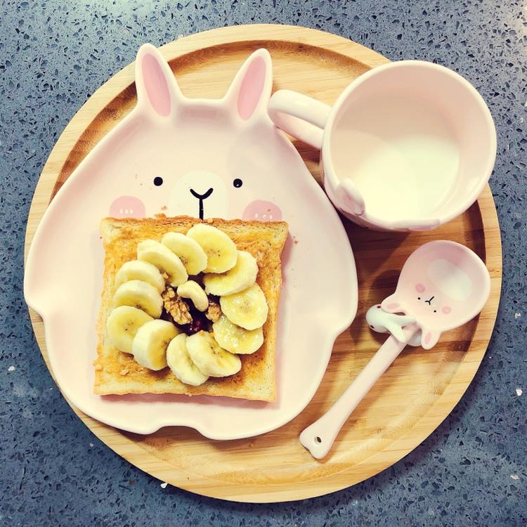 小c的早餐:香蕉坚果花生酱三明治🍌🌰🥜🥪➕牛奶🥛