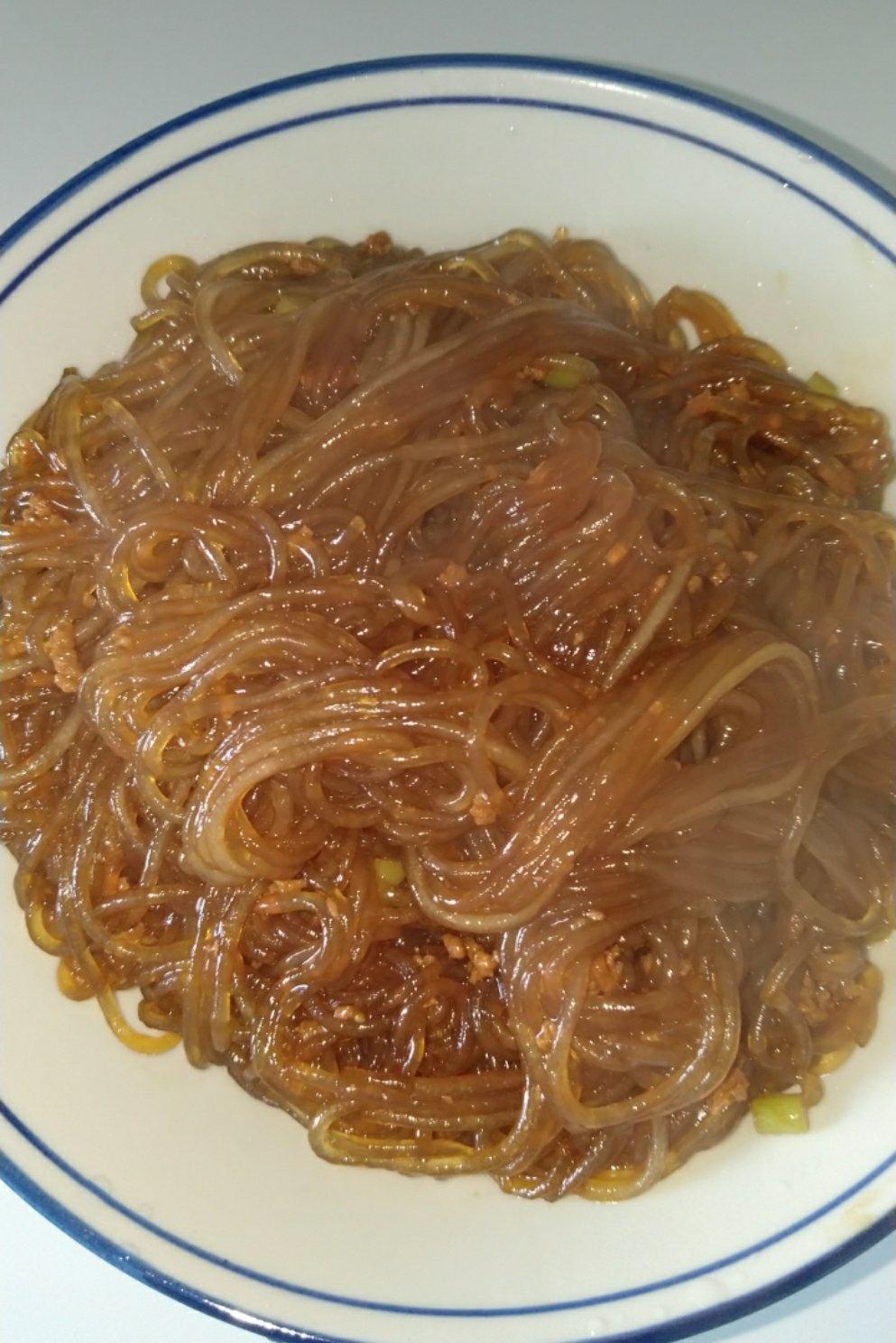 肉沫蒜薹粉条(蚂蚁上树)我炒粉永远都是分开盛放,这样吃着方便😂😂