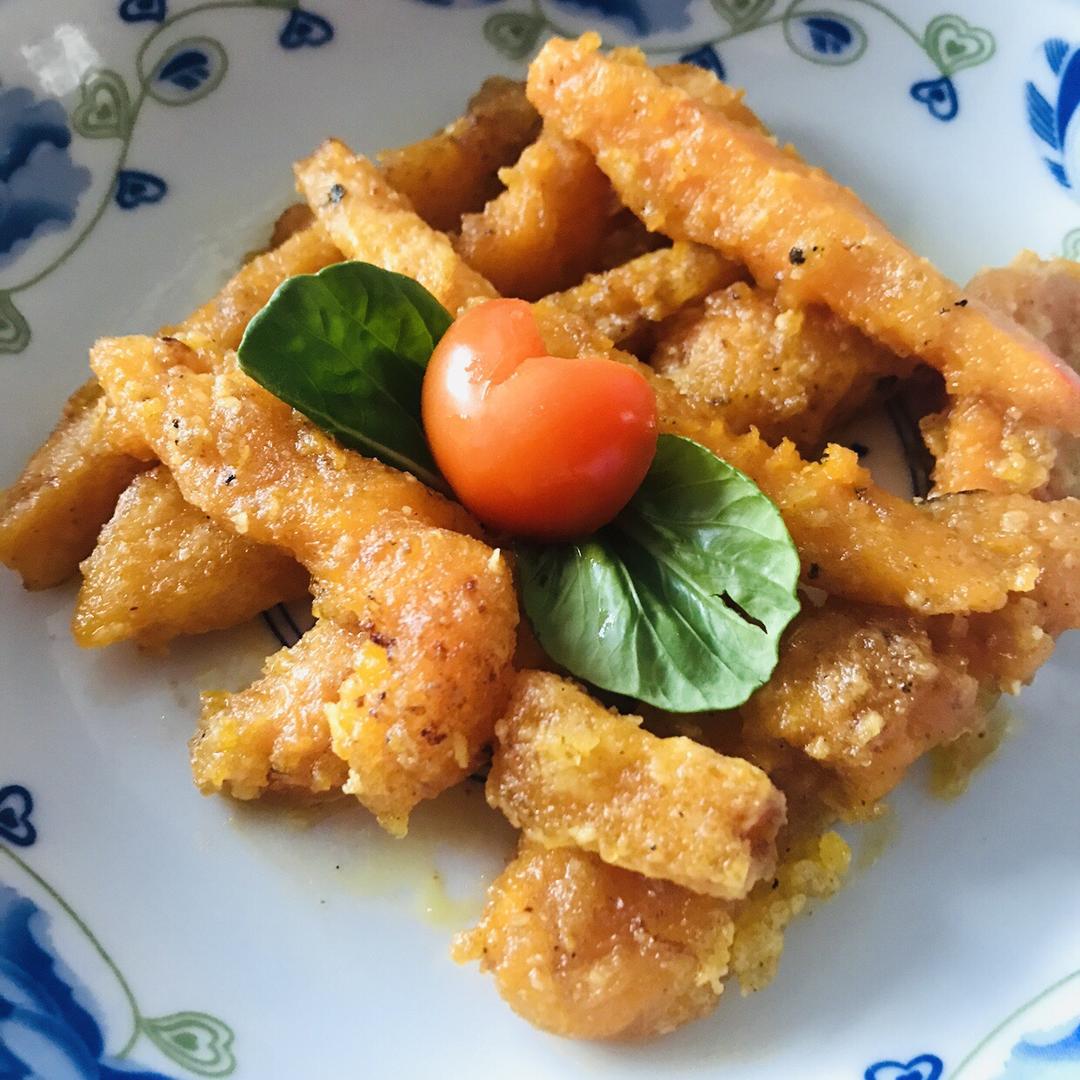 没有买到老南瓜,用的黄南瓜,最后南瓜太软了碎了好多,这是仅有的完整的几根了……还不错