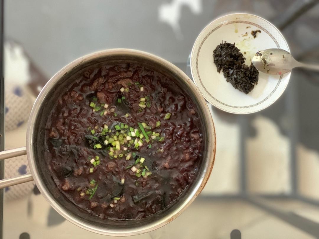 黑白米皮蛋瘦肉粥+橄榄菜