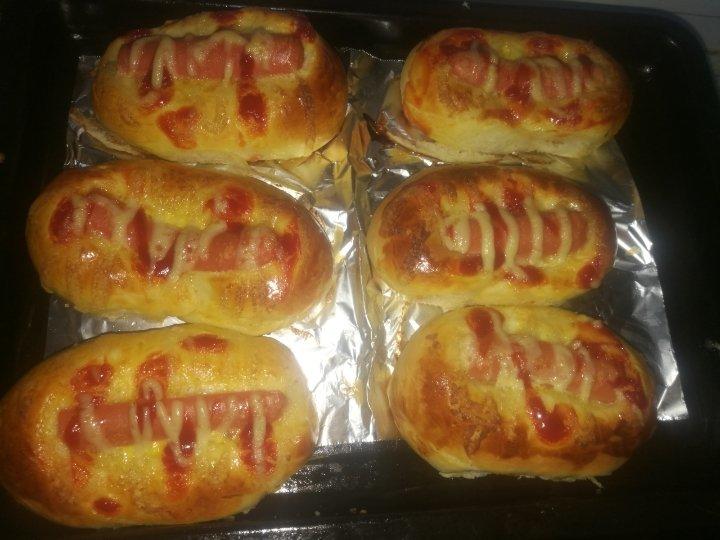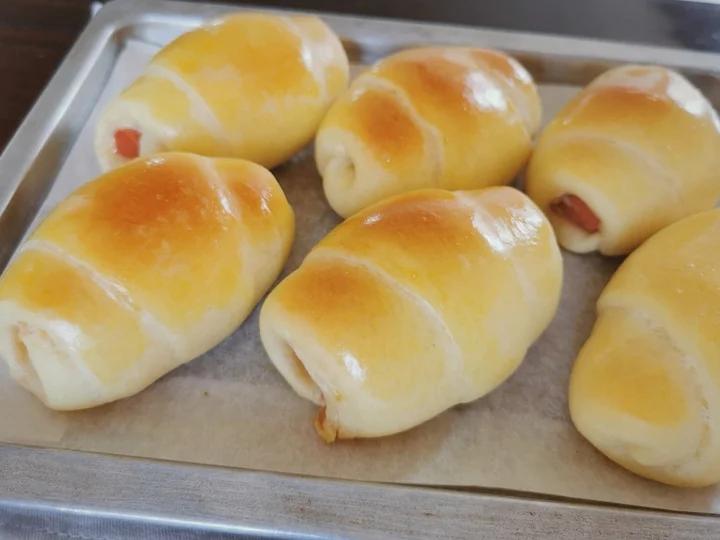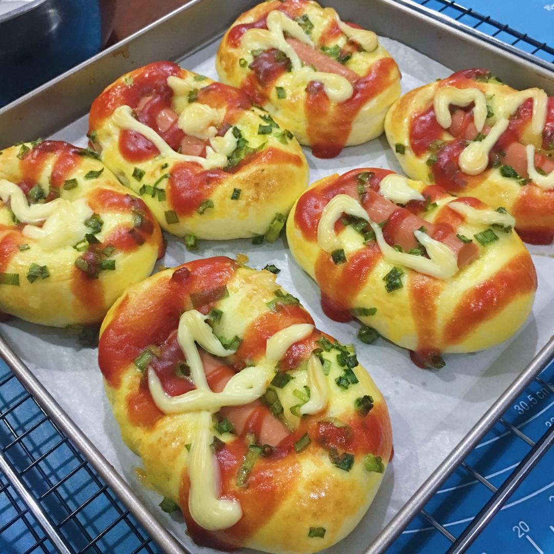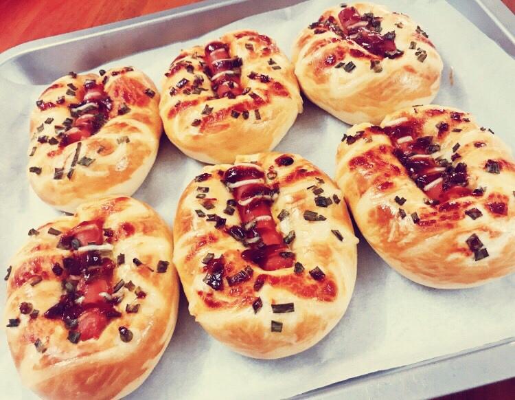 面包夹香肠,第一次做非常成功,葱香味十足😍