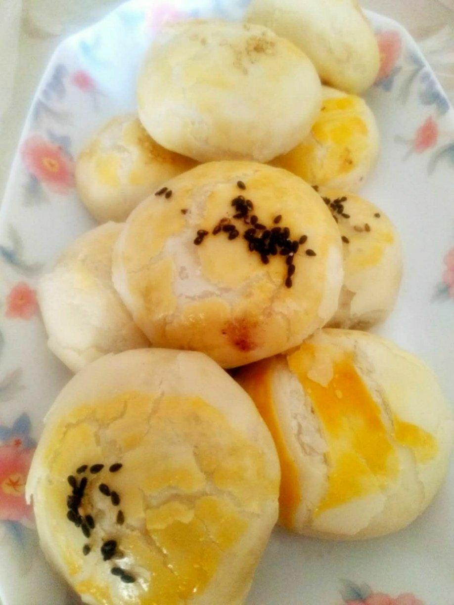 怕烤焦 在蛋黄里加了些黄油刷表面 成品很好 很酥脆 !!