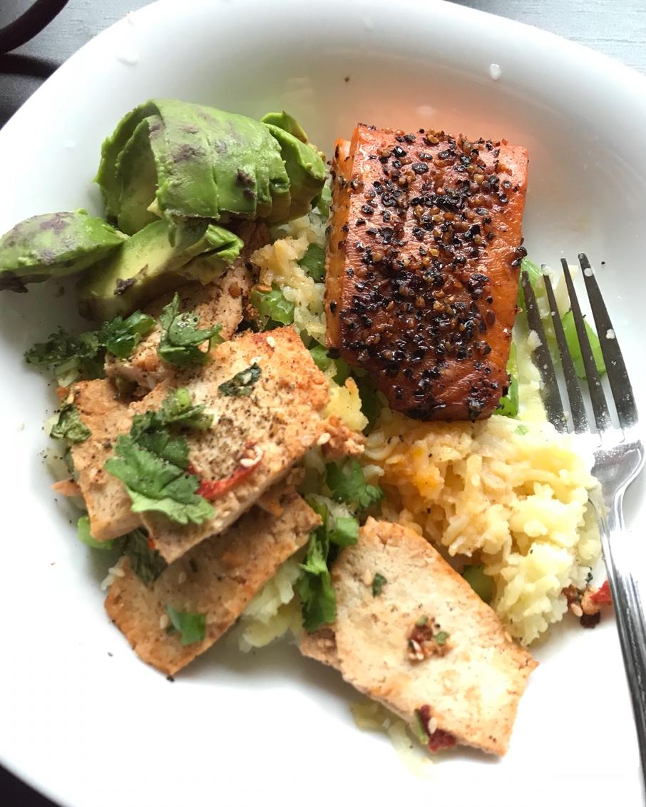 烤三文鱼+五香豆腐+土豆泥 再切个牛油果🥑 我的生活里不能没有烤箱!