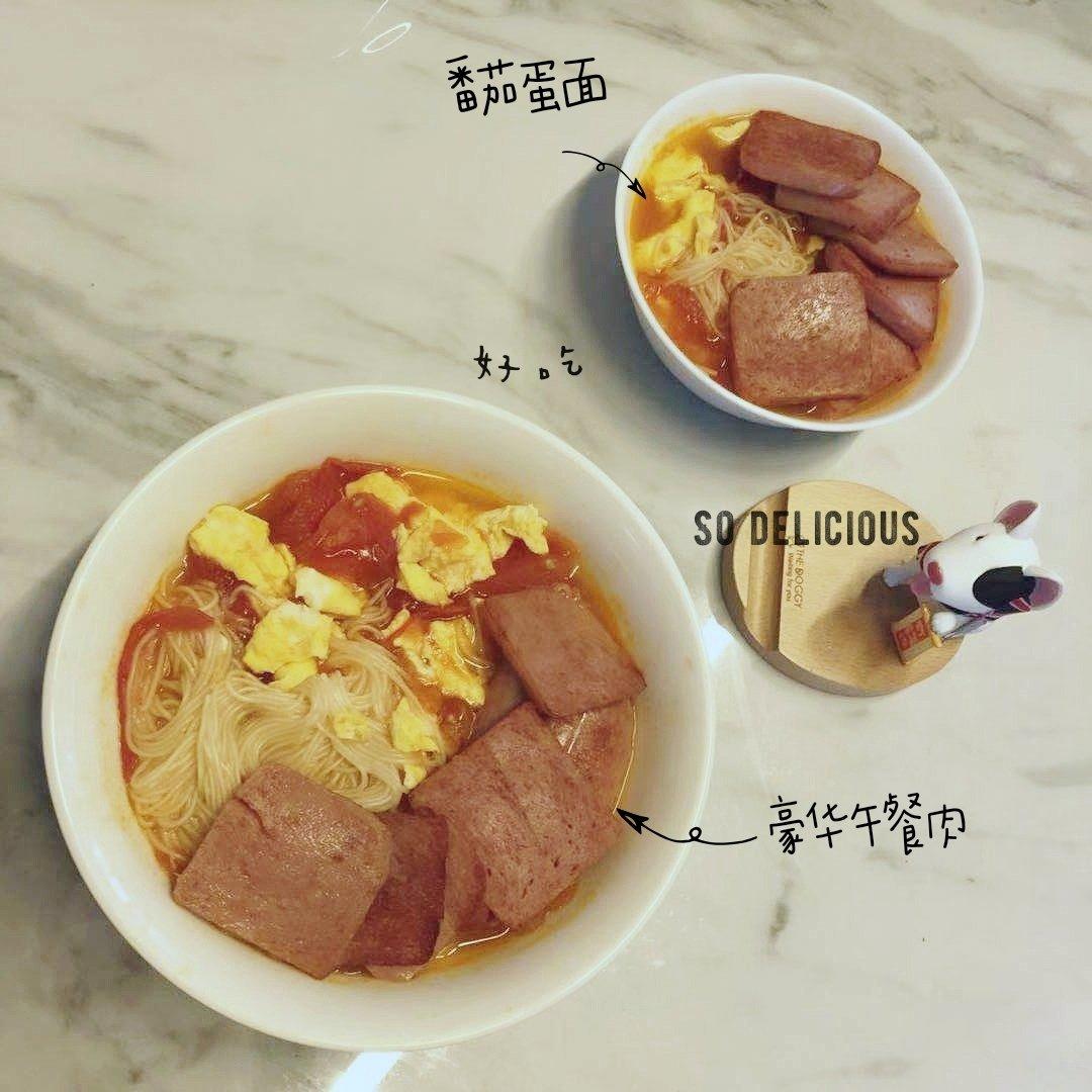 简化了一下,再配上低盐午餐肉。美味。