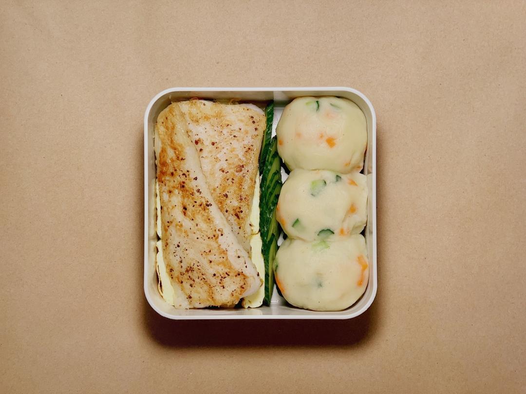 「今日份长肉」芥末土豆泥+龙利鱼+厚蛋烧+少的可怜的青菜...