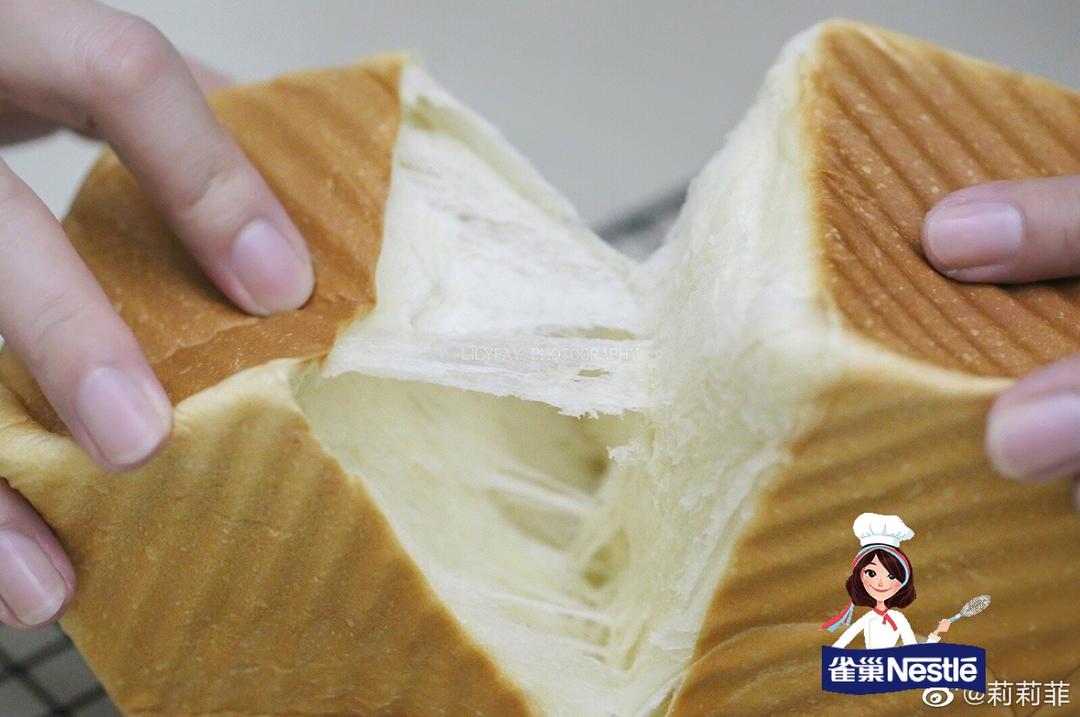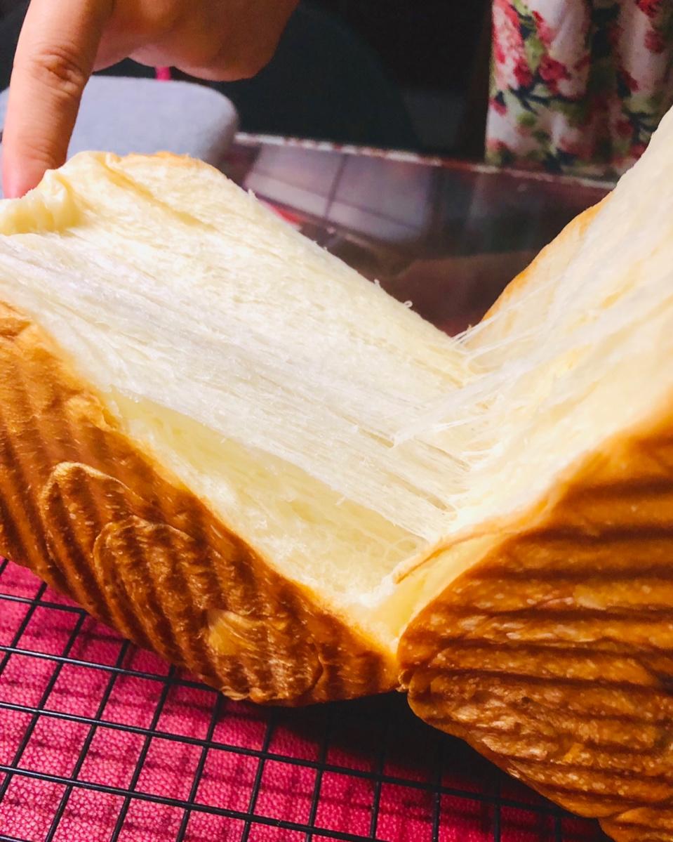 配方好棒👍手撕效果最好的一款吐司。用的山茶花,自己不喜欢甜,每个吐司减了10克糖,奶香浓郁,就是擀着有点费手😂 #纯奶手...