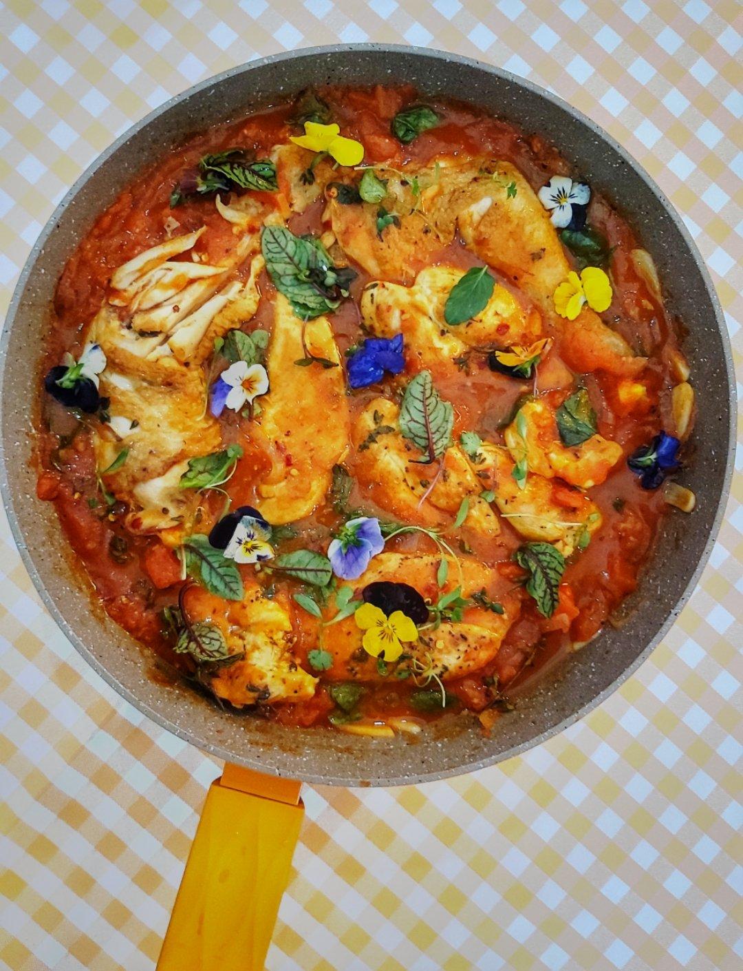 西红柿罗勒炖鸡胸肉,下饭
