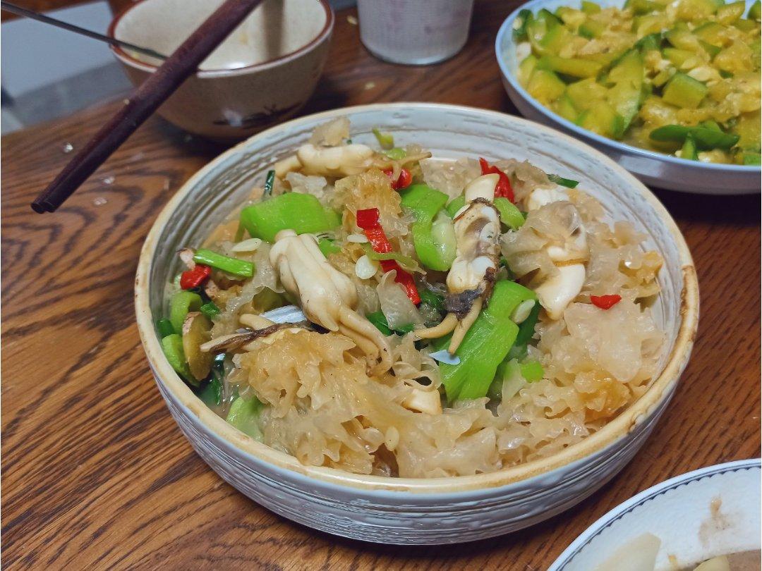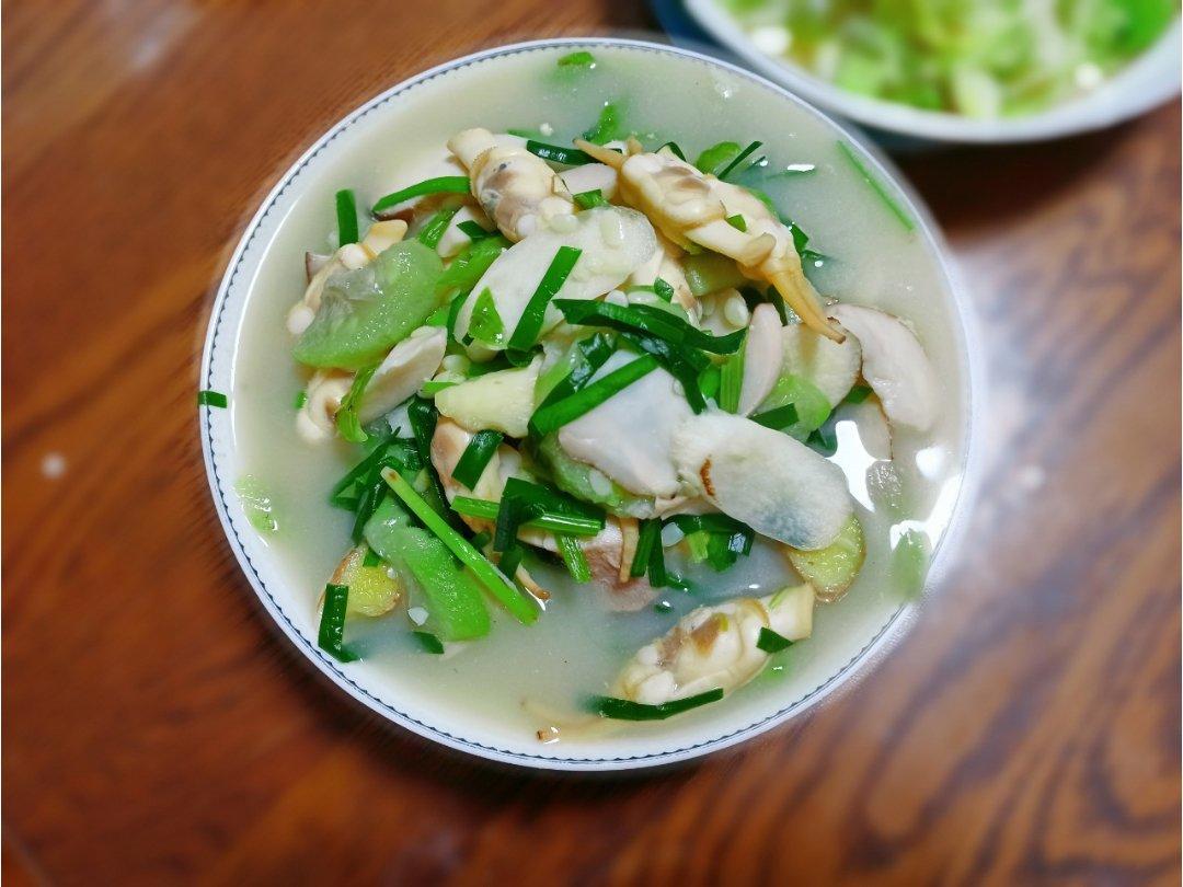 超级下饭!前面烫蛏子的汤妈妈稍微调调味加了把金针菇做成了一道零味精鲜汤😋