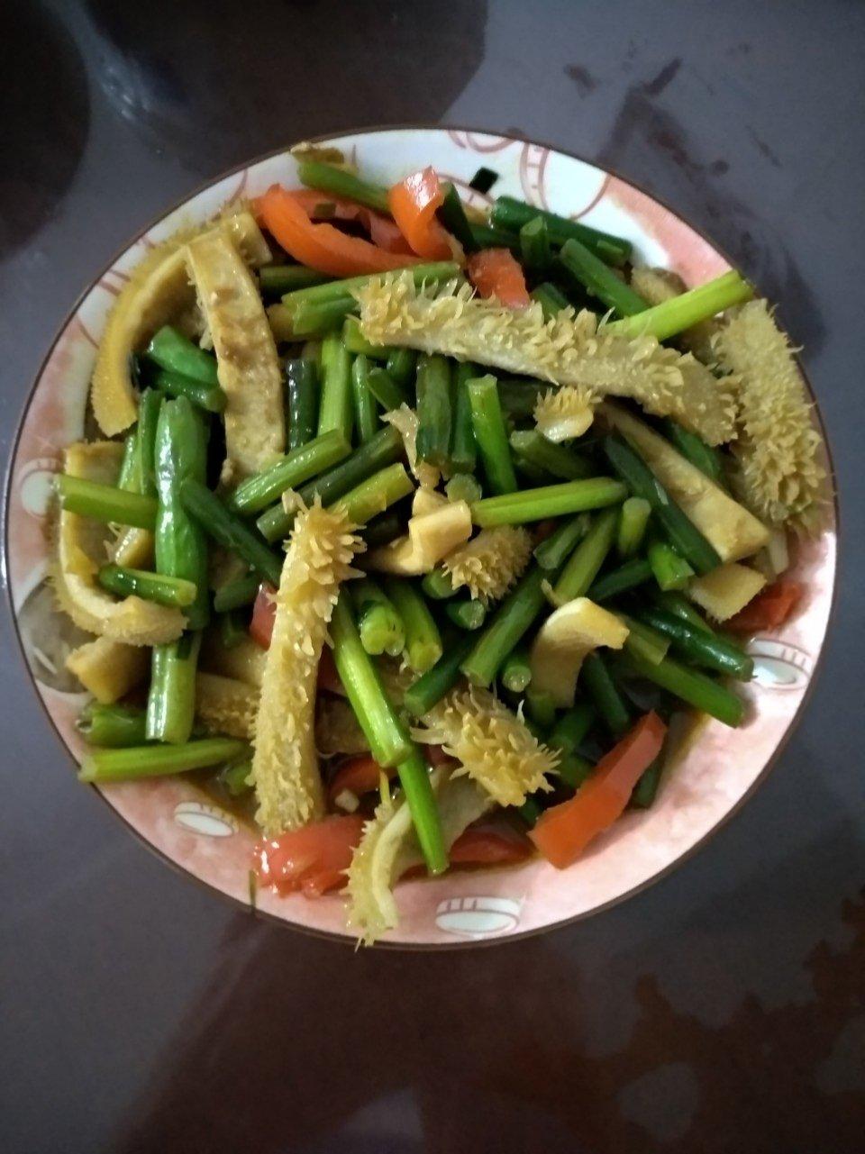 #蒜苗炒牛肚#