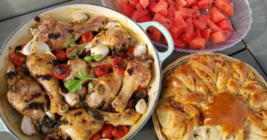 大蒜罗勒番茄烤鸡腿 ,大蒜面包