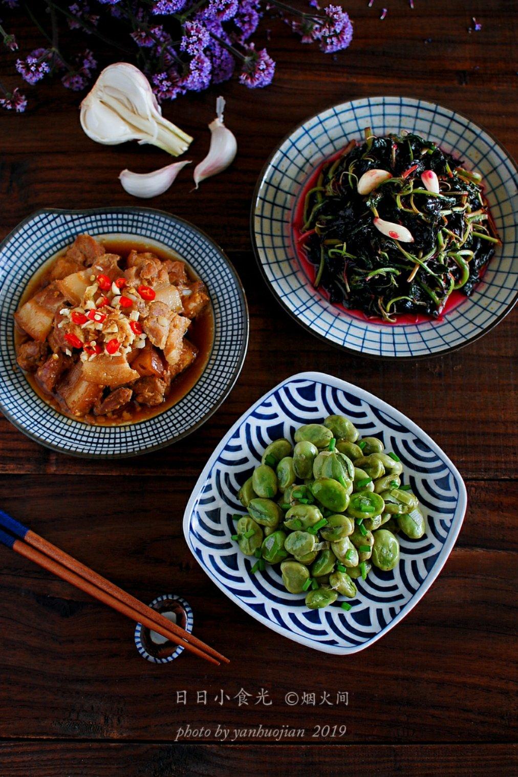 嫩蚕豆、红苋菜,