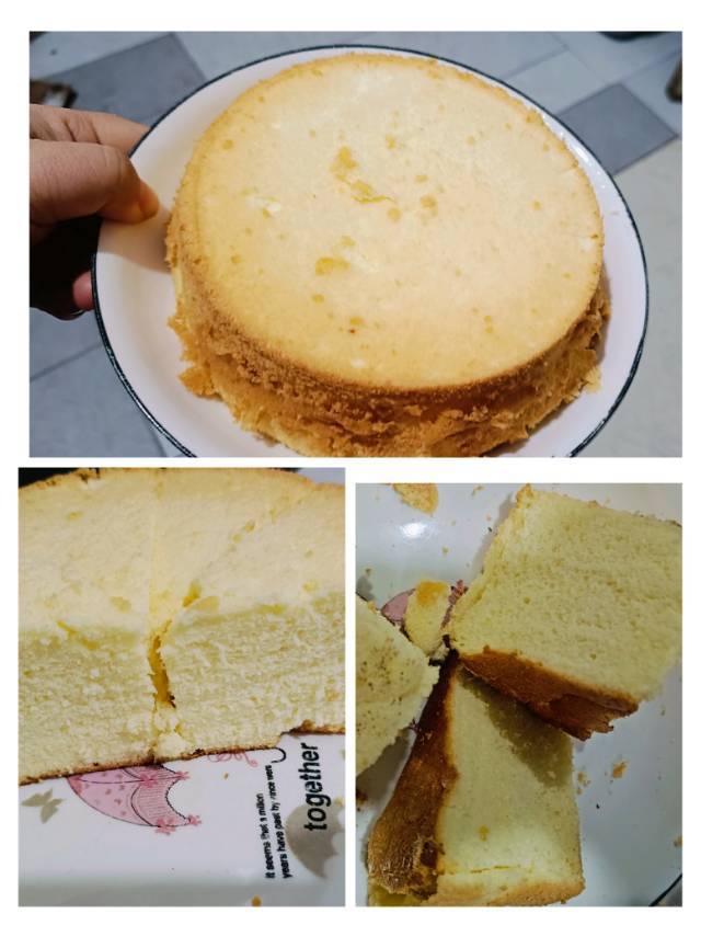 厨房小白第一次做蛋糕,好像不太成功的样子。