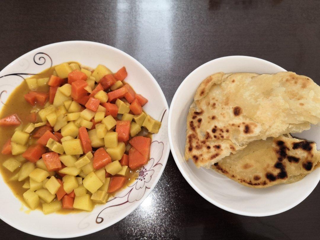 咖喱土豆+爸爸昨天做的烙饼🤗