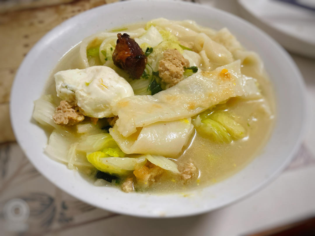汤肉菜蛋,各🈶各的鲜美,一大碗和和美美丰富多滋味,热腾腾吃下去人肚子饱饱身上暖和和...