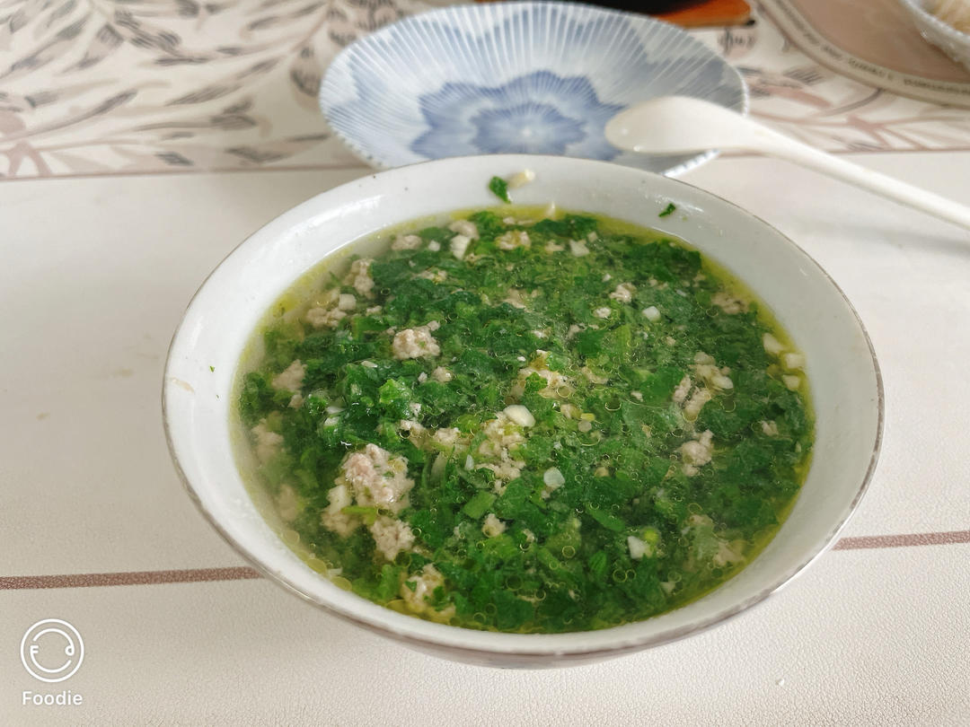 南瓜尖儿肉末汤