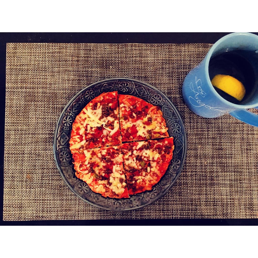之前做好冷冻的披萨面胚,拿...