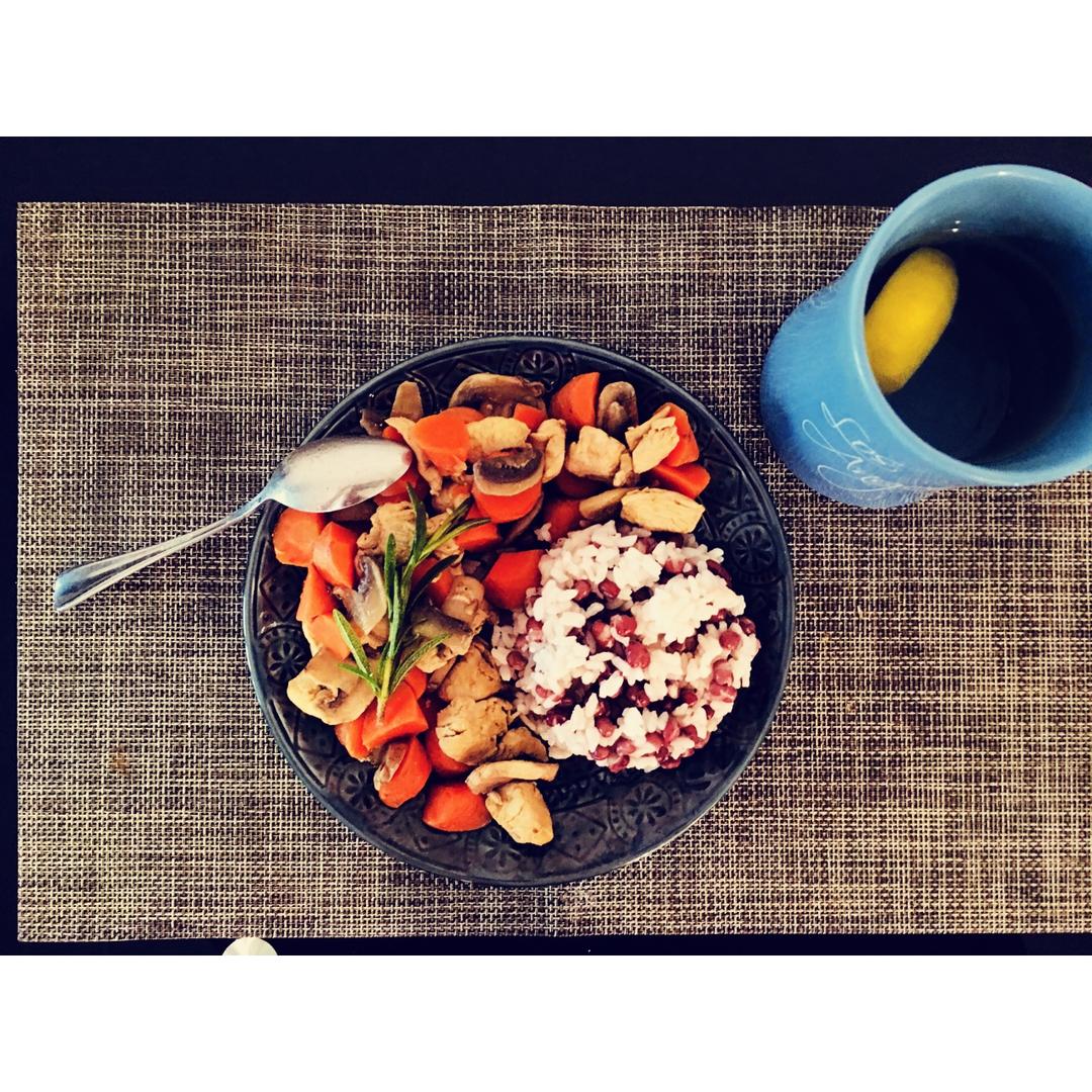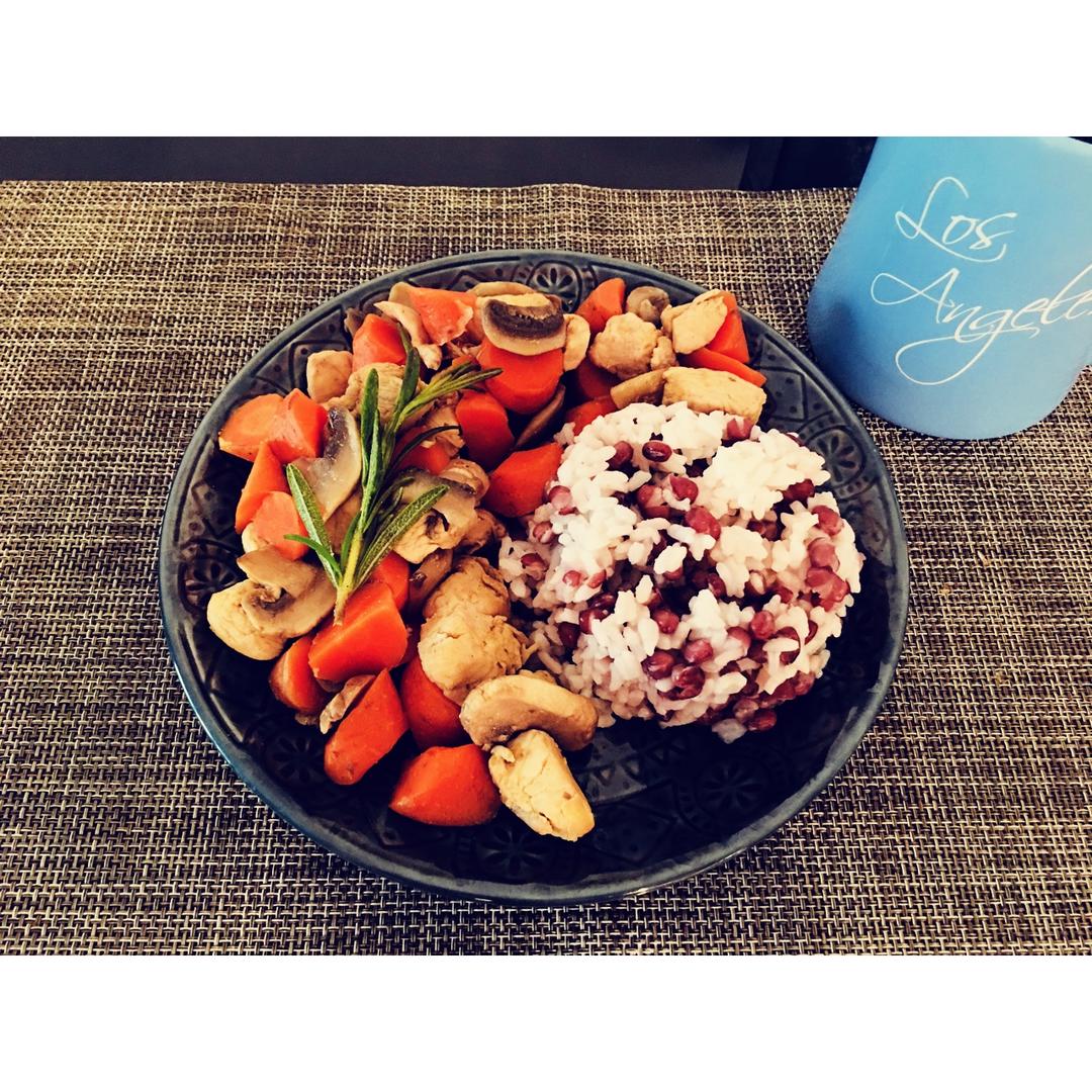 鸡肉胡萝卜盐煮蘑菇