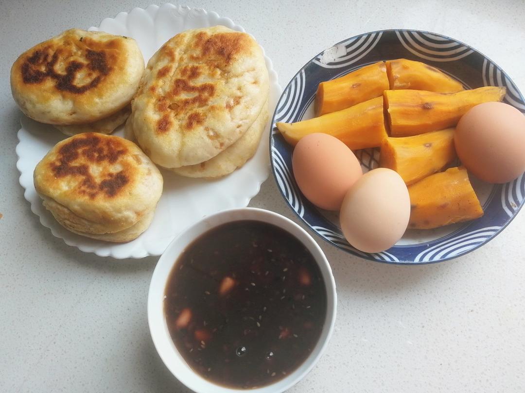 面糊和鸡蛋分开放,吃起来也筋道些。面糊不能太稀,稠的酸奶状态即可。有愿意每天一起早餐打卡的...